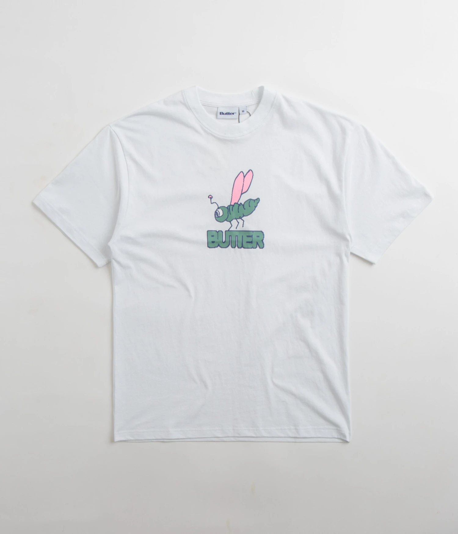 Butter Goods Dragonfly T-Shirt in White. Part of the brand’s latest release, this regular fitting Butter Goods t-shirt is made from 100% cotton. Featuring a flexible rib knit collar and a straight cut hem, this white Butter Goods t-shirt is finished with a screen printed centre chest graphic.