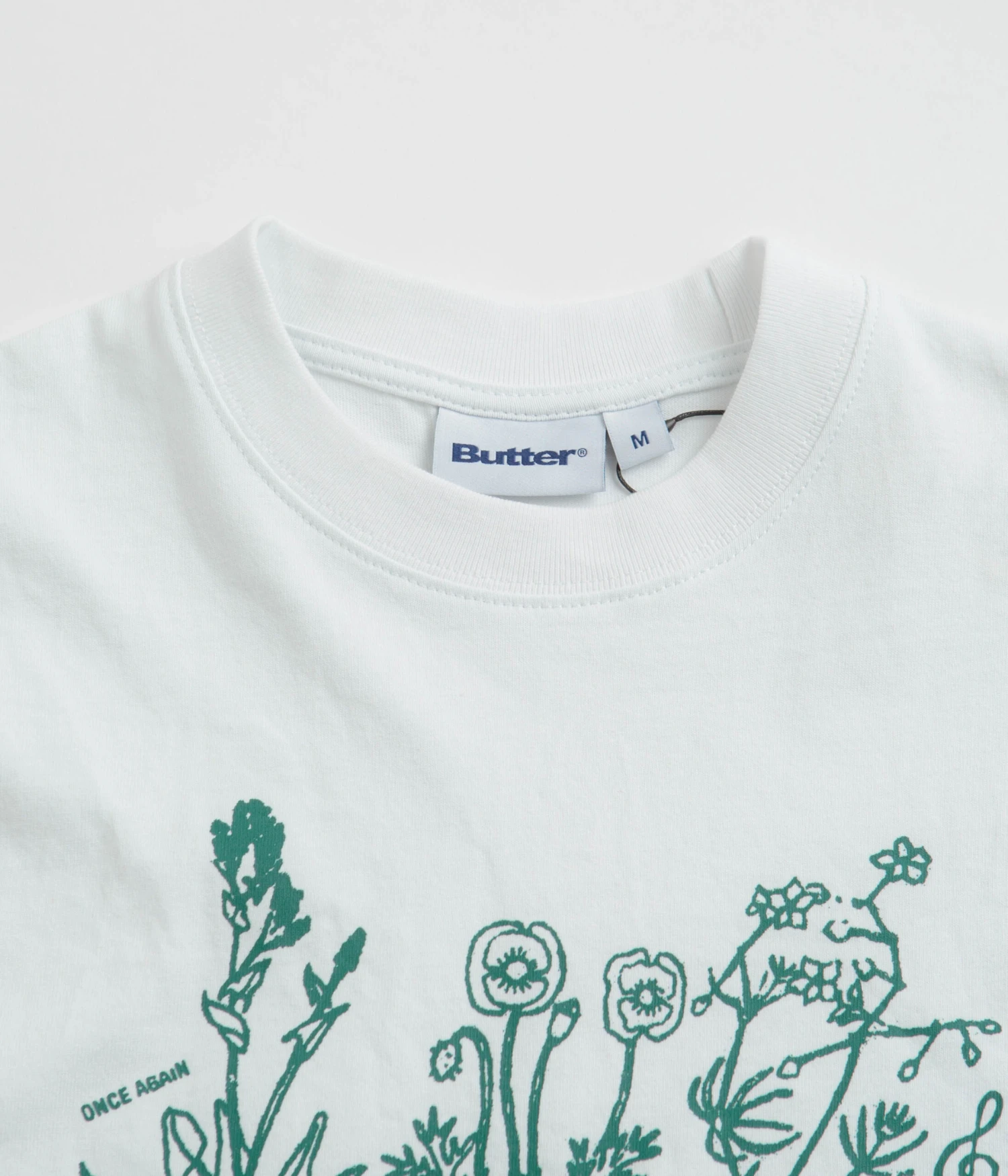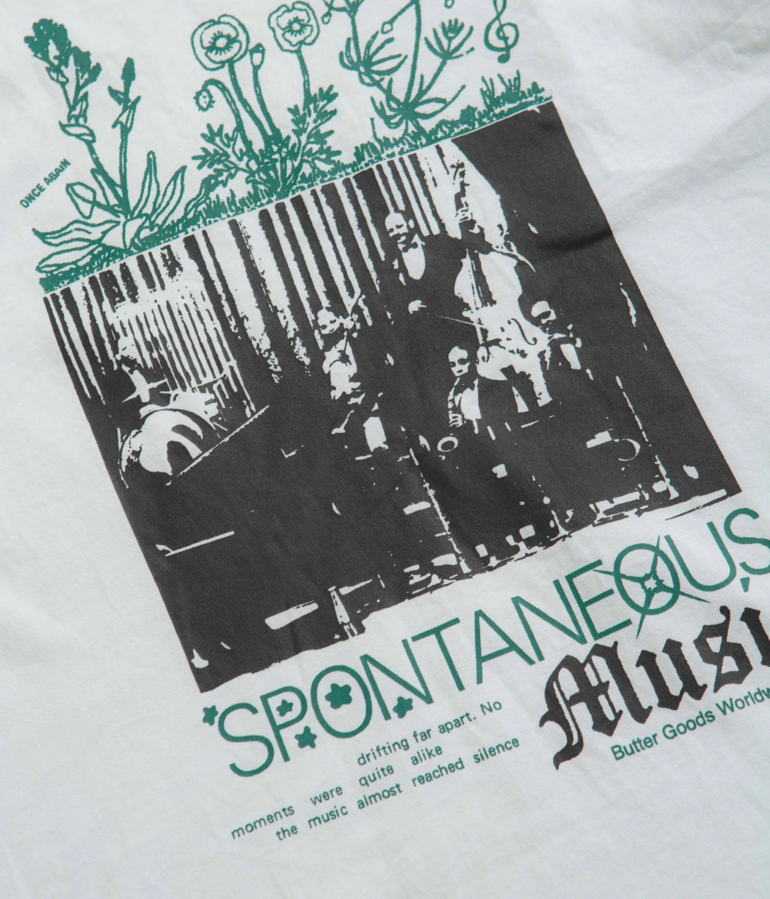 Butter Goods Spontaneous Music T-Shirt in White. Part of the brand’s latest release, this regular fitting Butter Goods t-shirt is made from 100% cotton. Featuring a classic crew collar and a reinforced hem, this white Butter Goods t-shirt is finished with a screen printed chest graphic.