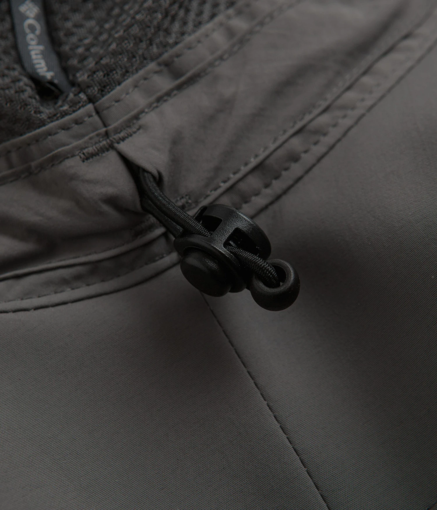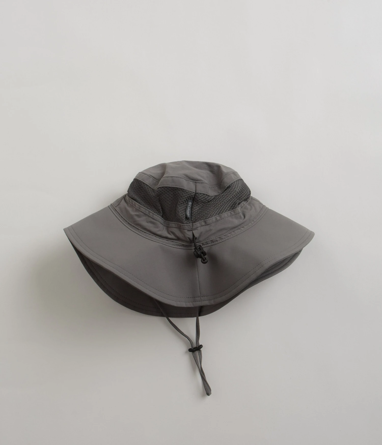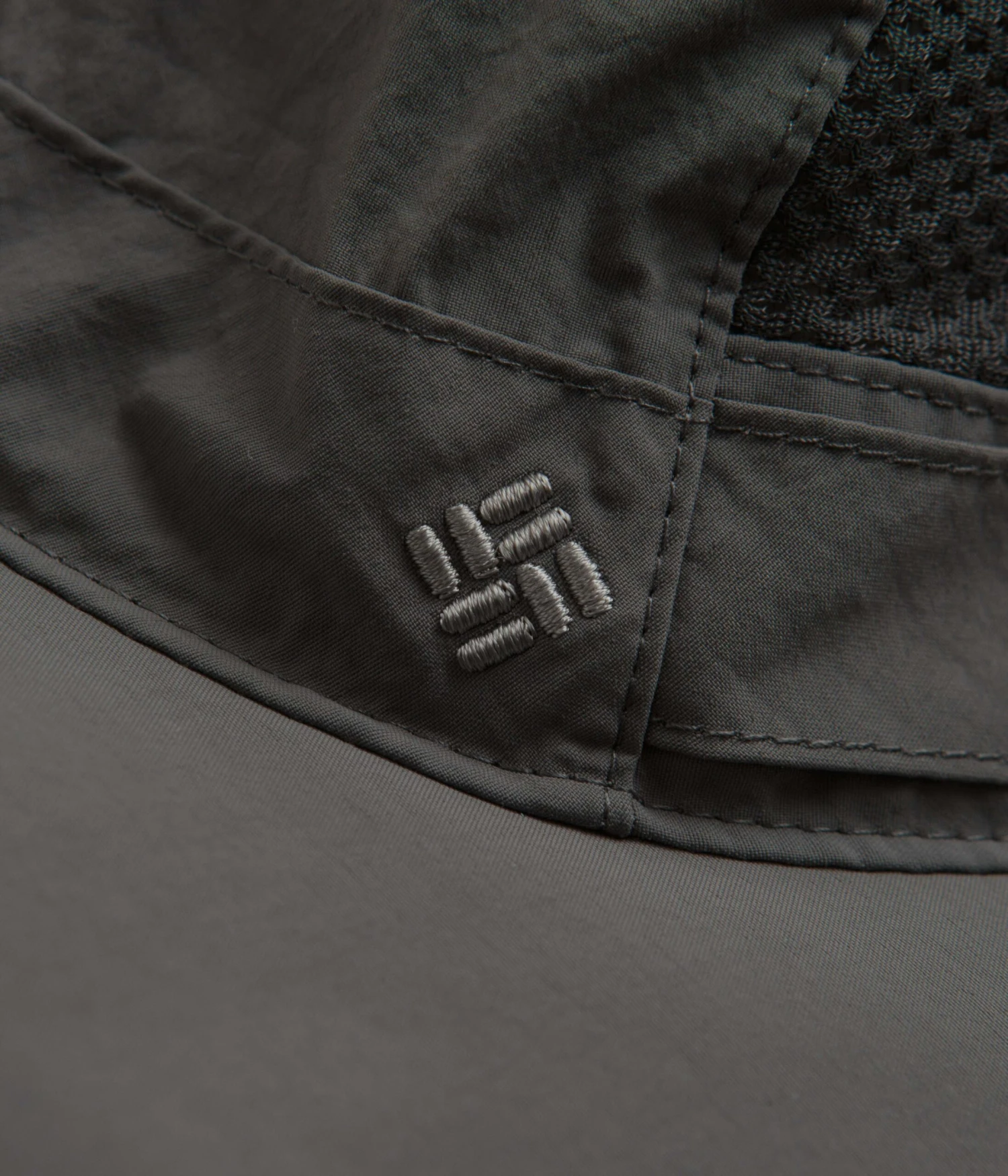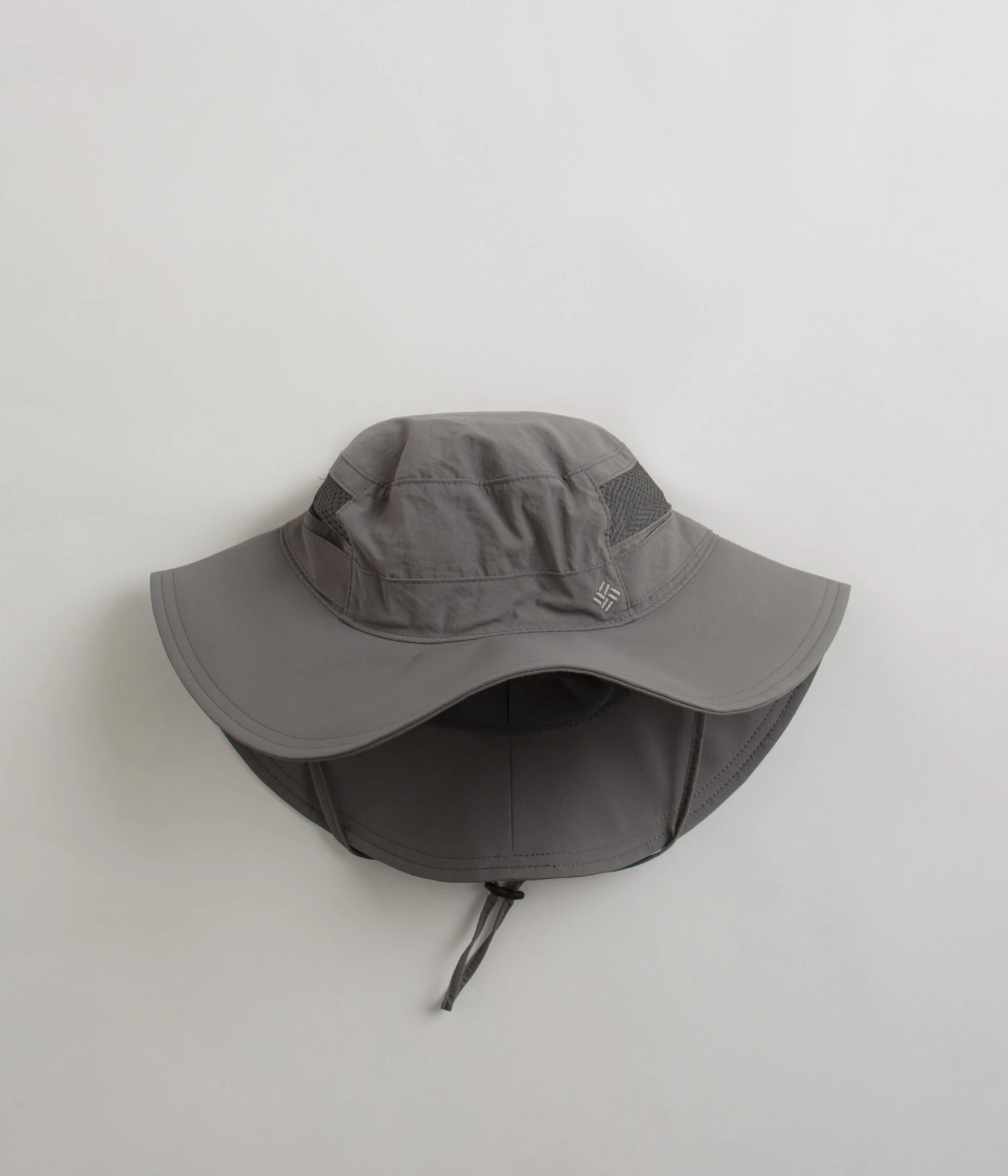 Columbia Bora Bora Booney Hat in City Grey. Single sized and made from 100% textured nylon poplin with an Omni-Wick™ inner sweatband, this Columbia hat also features a 3” wrap-around brim and breathable mesh panelling. Finished in a shade of grey with an adjustable toggle-cord fastening, an under-chin strap and with embroidered logo branding.