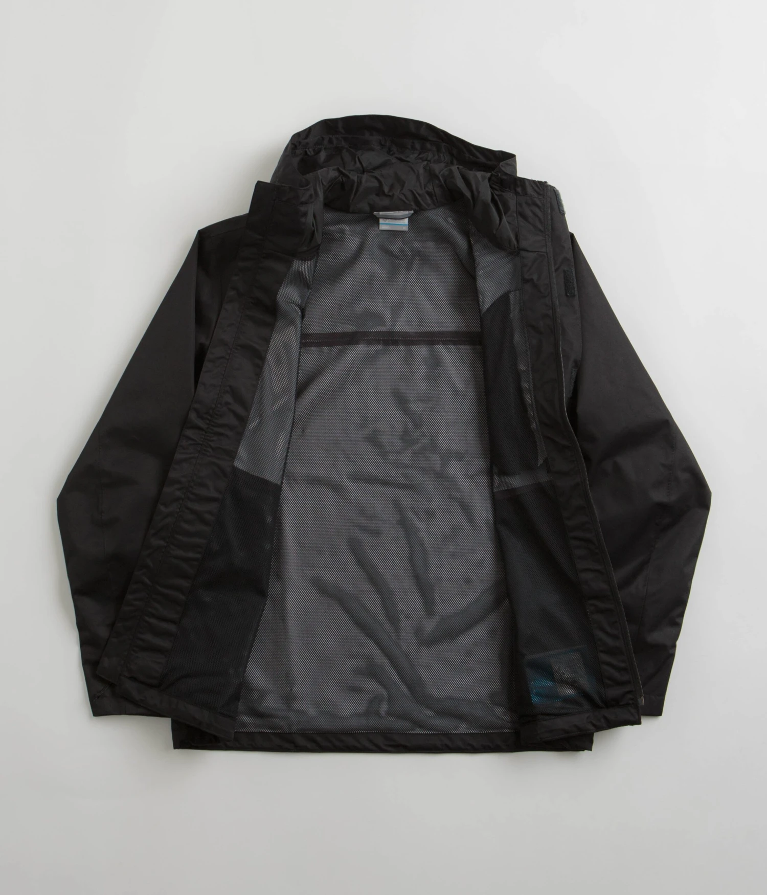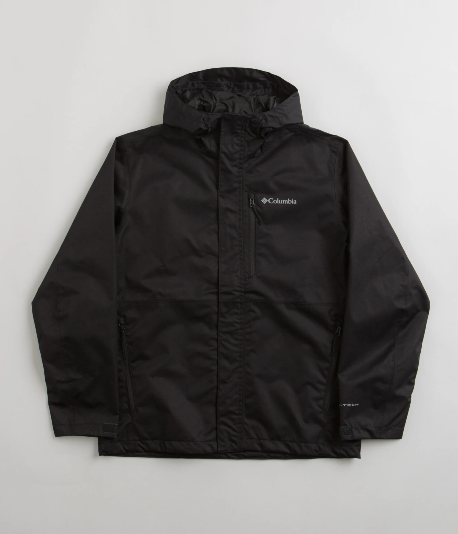 Columbia Hikebound Jacket in Black. Regular fitting and made from 100% polyester, this packable Columbia jacket is designed with a fine mesh lining and a water-resistant shell. Featuring an adjustable hood, a full length zipper fastening and Omni-Techâ„¢ technology, this black Columbia jacket also features fully sealed seams and adjustable cuffs. Finished with two zippered waist pockets, a zippered chest pocket and with printed logo branding.