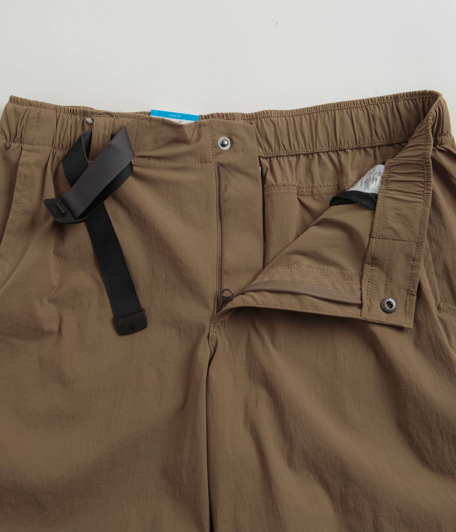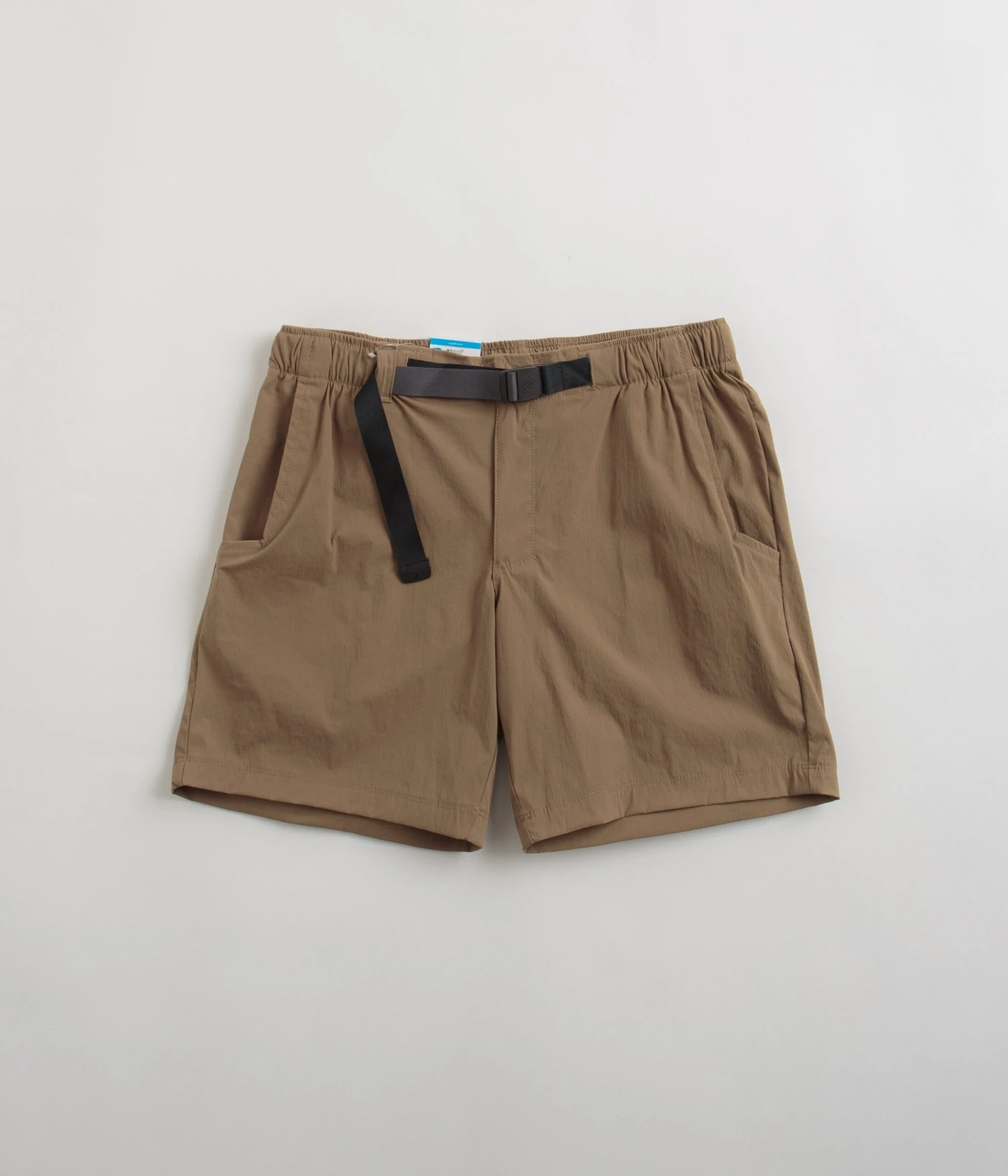 Columbia Landroamer Ripstop Shorts in Delta. Cut to an above-knee length, these regular fitting Columbia shorts are made from a nylon-elastane blend. Quick drying with Omni-Shadeâ„¢ Broad Spectrum UPF 50 technology and Omni-Shieldâ„¢ Advanced Repellency, these brown Columbia shorts also feature an elasticated waist, an integrated webbing belt and a woven rear utility loop. Finished with two side pockets, a snap secured rear pocket and with woven flag label branding.
