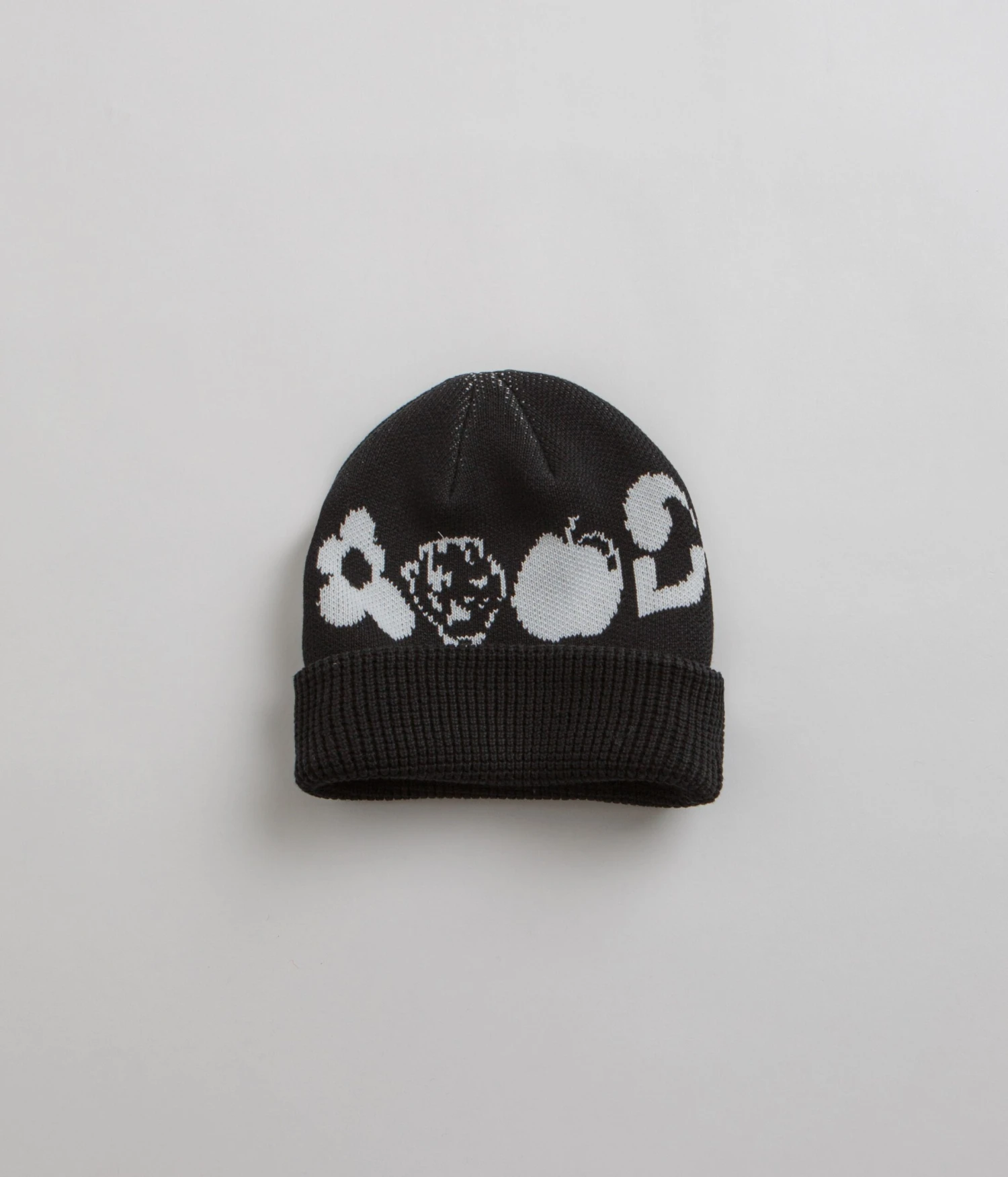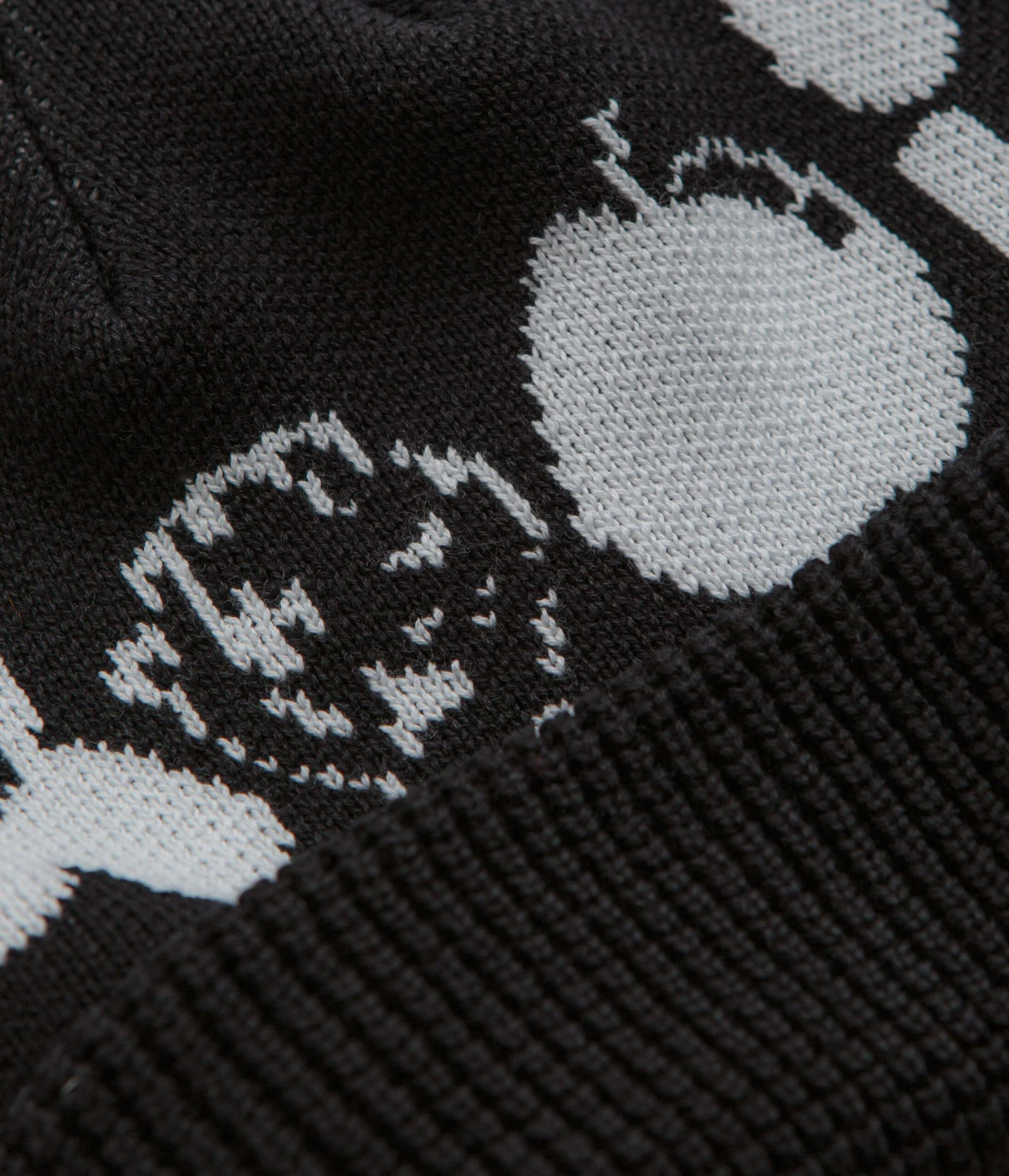 Dancer Icon Beanie in Black. Designed with a jacquard knit pattern, this single sized Dancer beanie is made from 100% cotton waffle. Finished in a shade of black with a stretchy rib knit face and with an adjustable fold-over cuff.