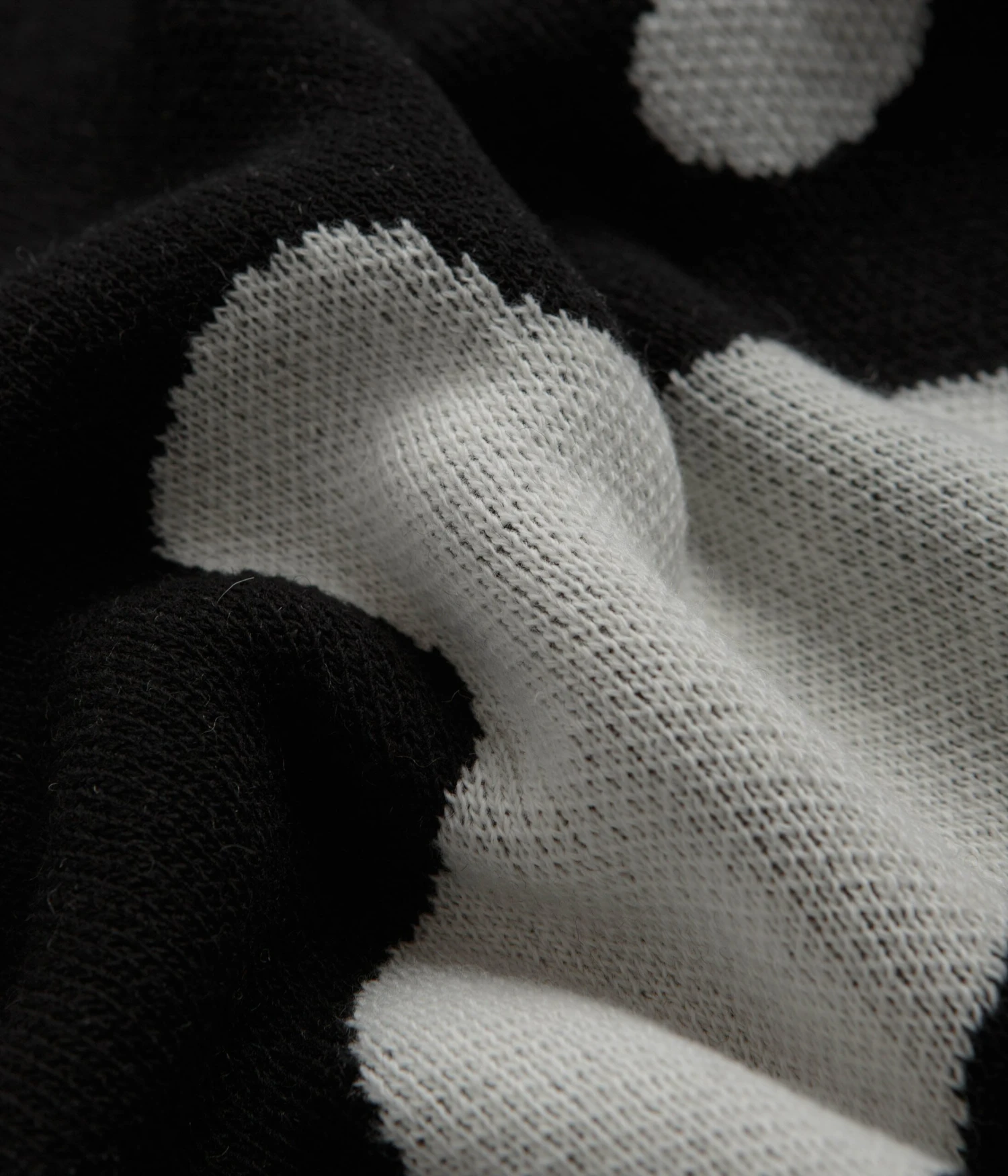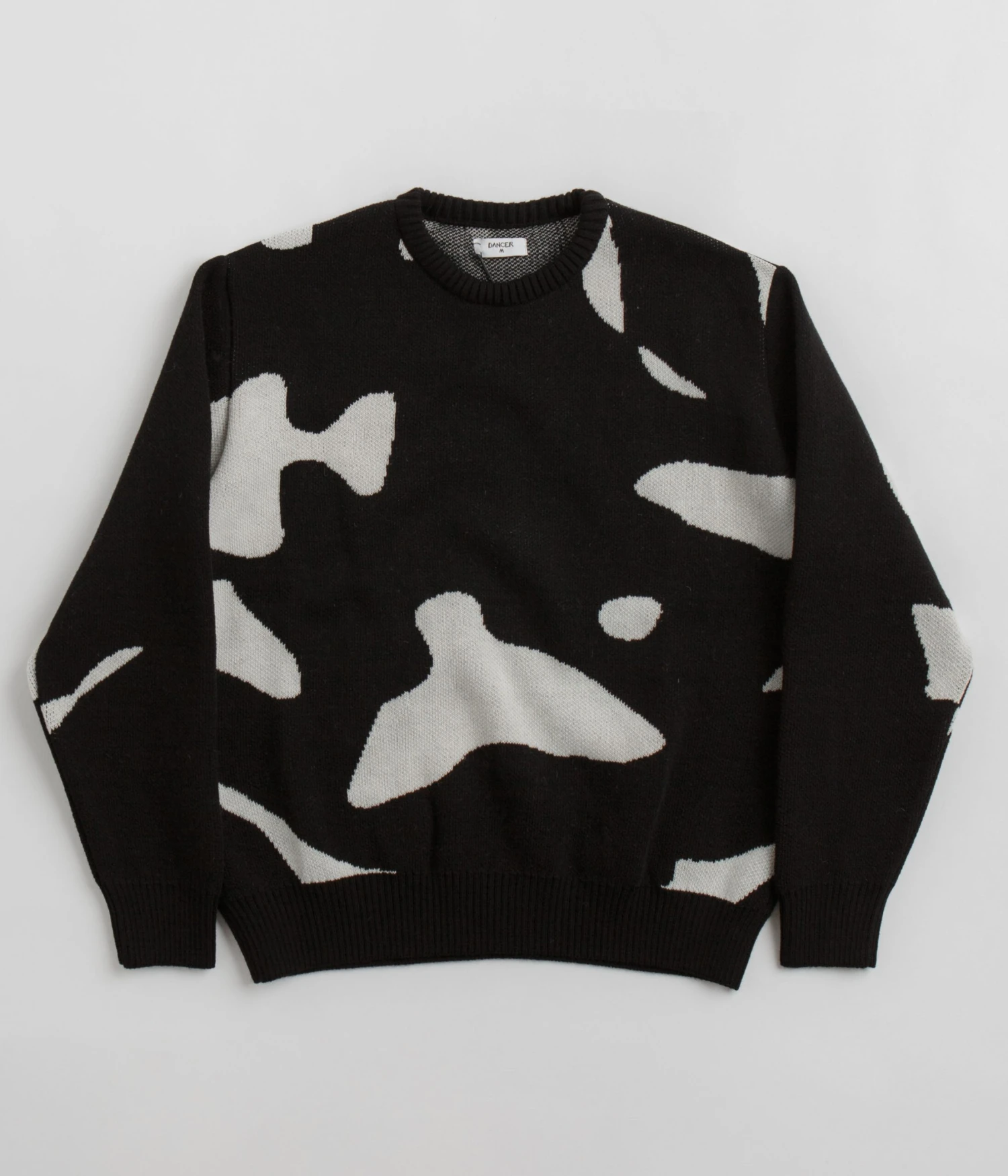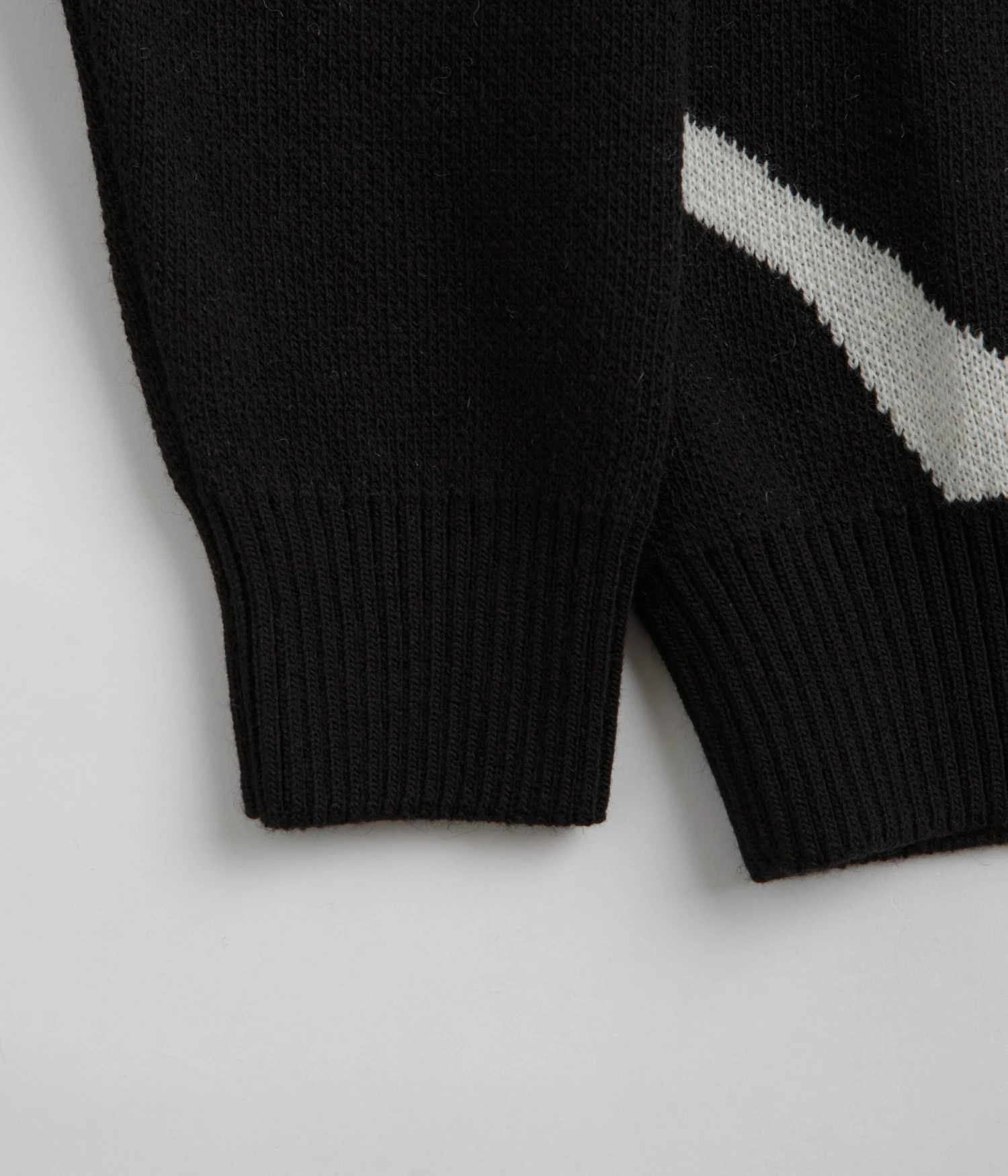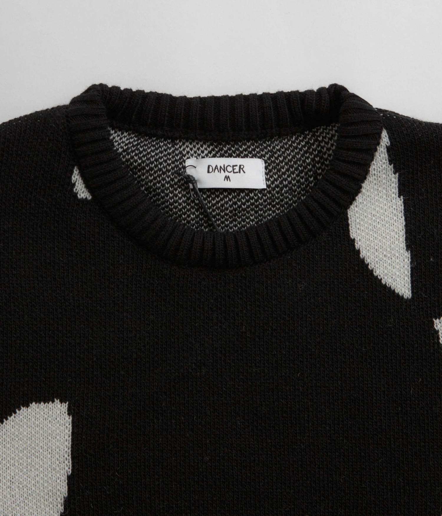 Dancer Mask Knit Sweatshirt in Black. Made from a wool-polyester blend with an intarsia knit design, this regular fitting Dancer sweatshirt is styled with a thick rib crew collar. Finished in a shade of black with white patches, ribbed cuffs and with a woven elastic hem.