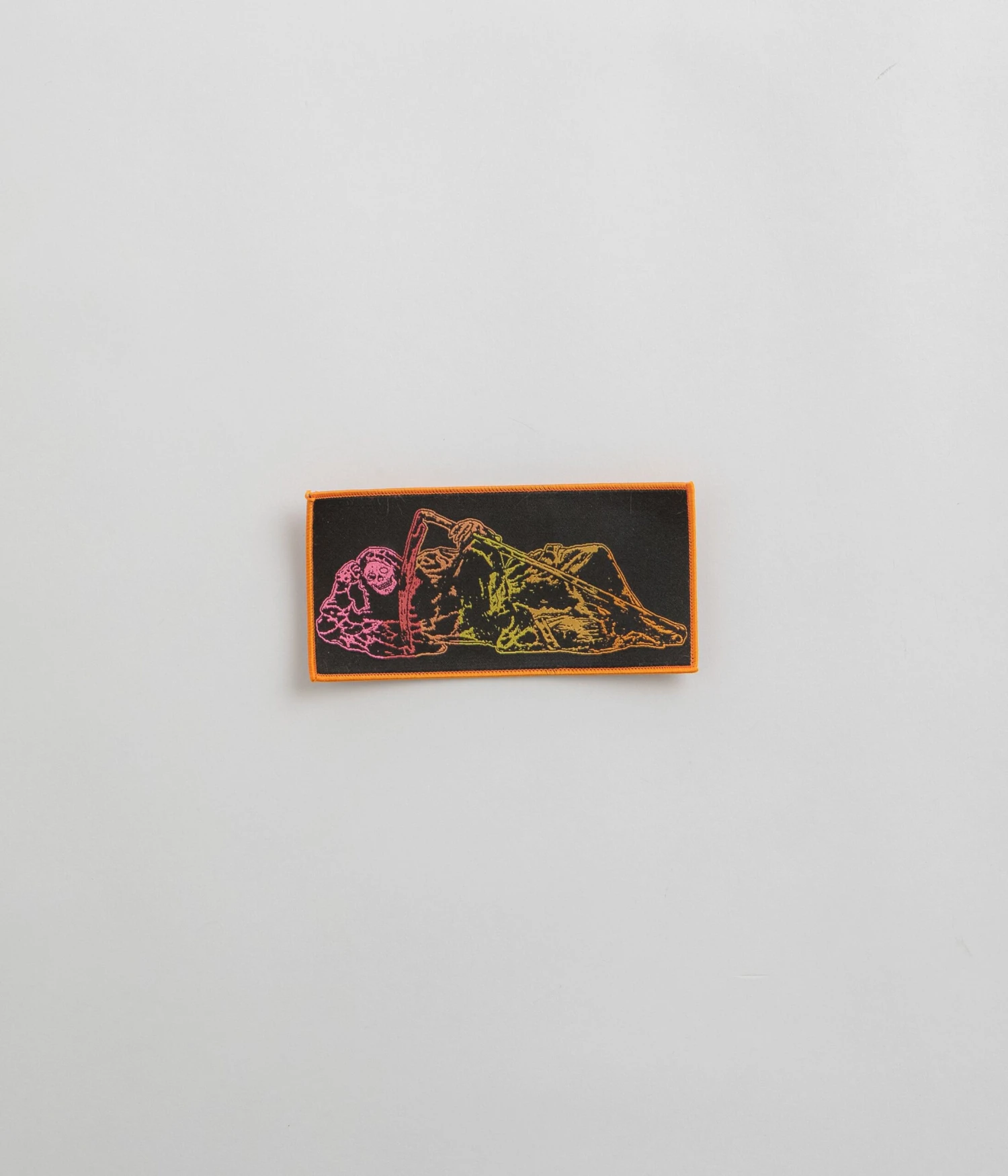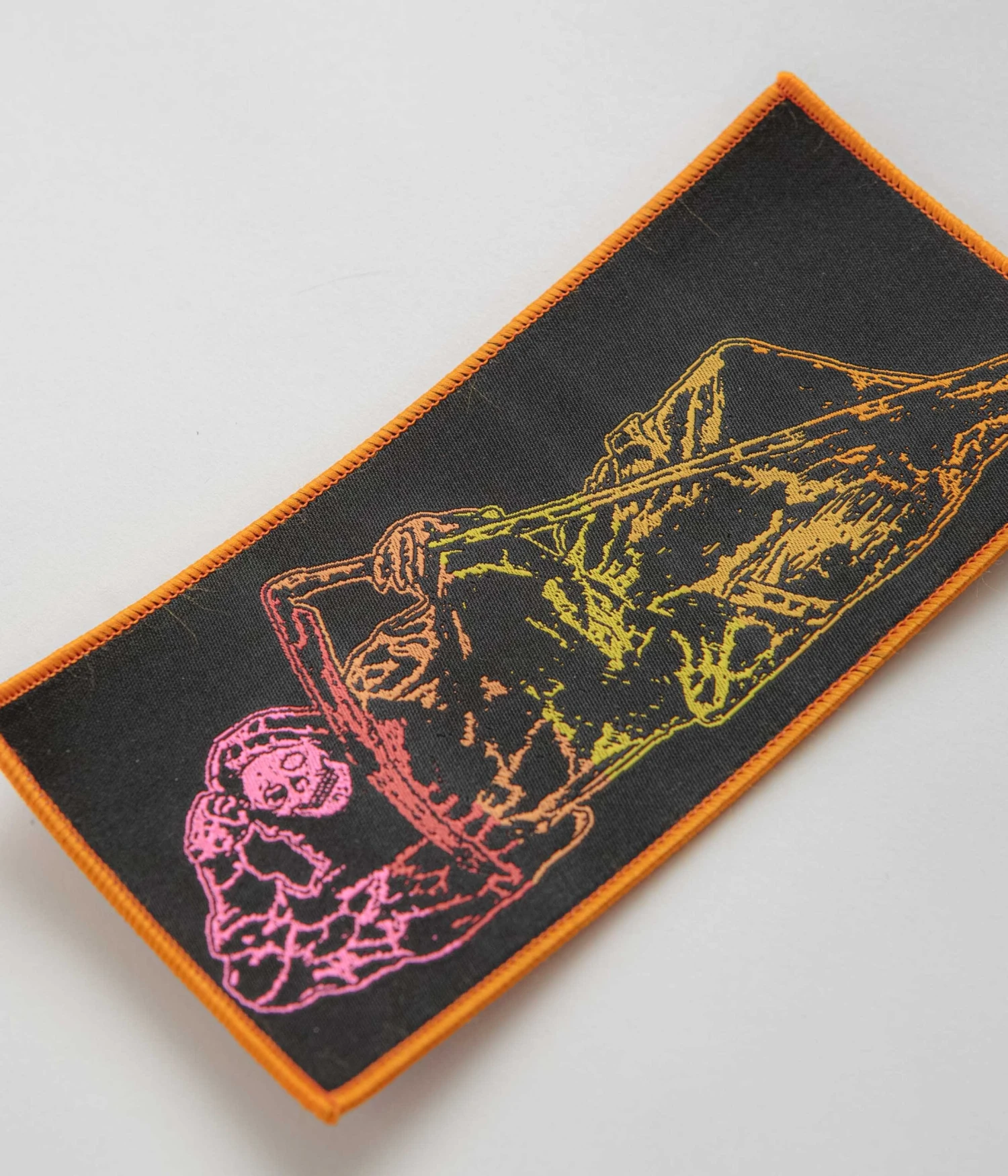 Dungeon Reaper Lax Patch in Multi. Designed in multi-coloured neon shades, this single sized Dungeon patch is styled with an iron-on backing and with a size of approximately 15 x 7.5cm.