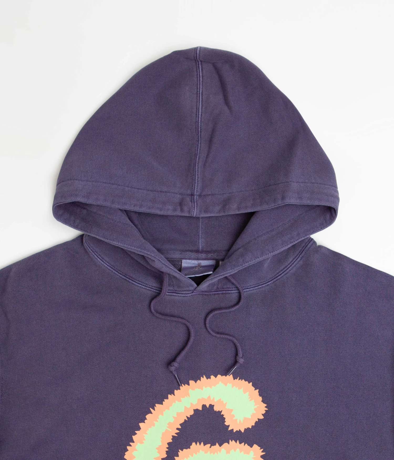 Gramicci Fuzzy G-Logo Hoodie in Navy Pigment. Tailored to a regular fitting with a pigment dyed fabrication, this new season Gramicci hoodie is made from 100% cotton. Featuring a drawstring hood, ribbed cuffs and a woven elastic hem, this navy Gramicci hoodie is finished with a kangaroo pouch pocket, a French terry construction and with a large fuzzy G logo displayed across the centre chest.