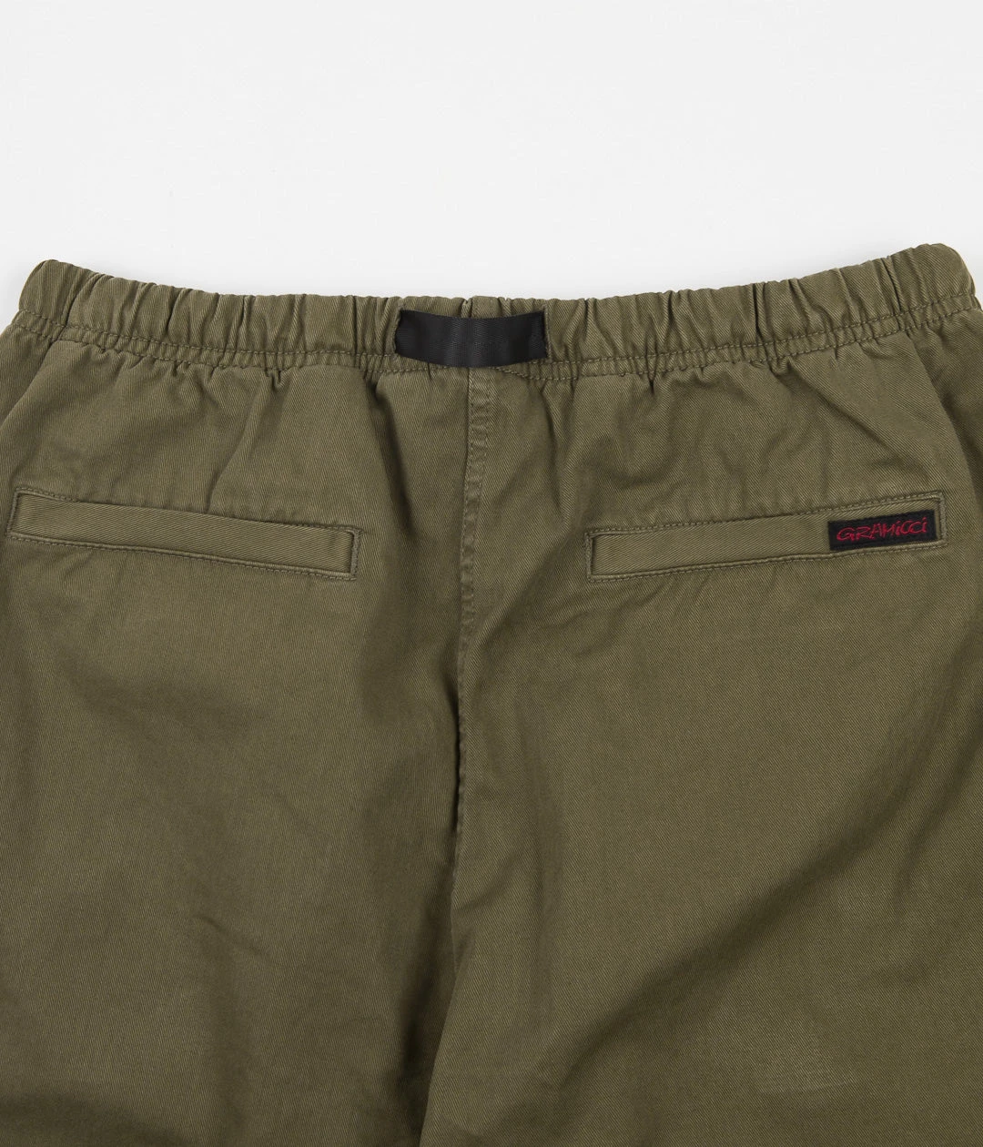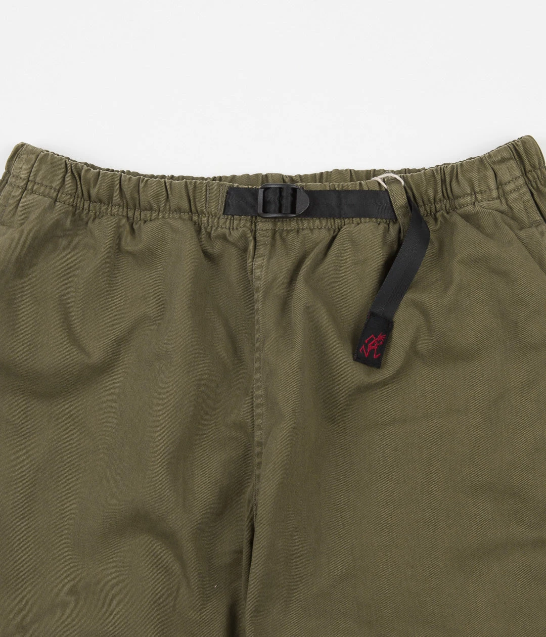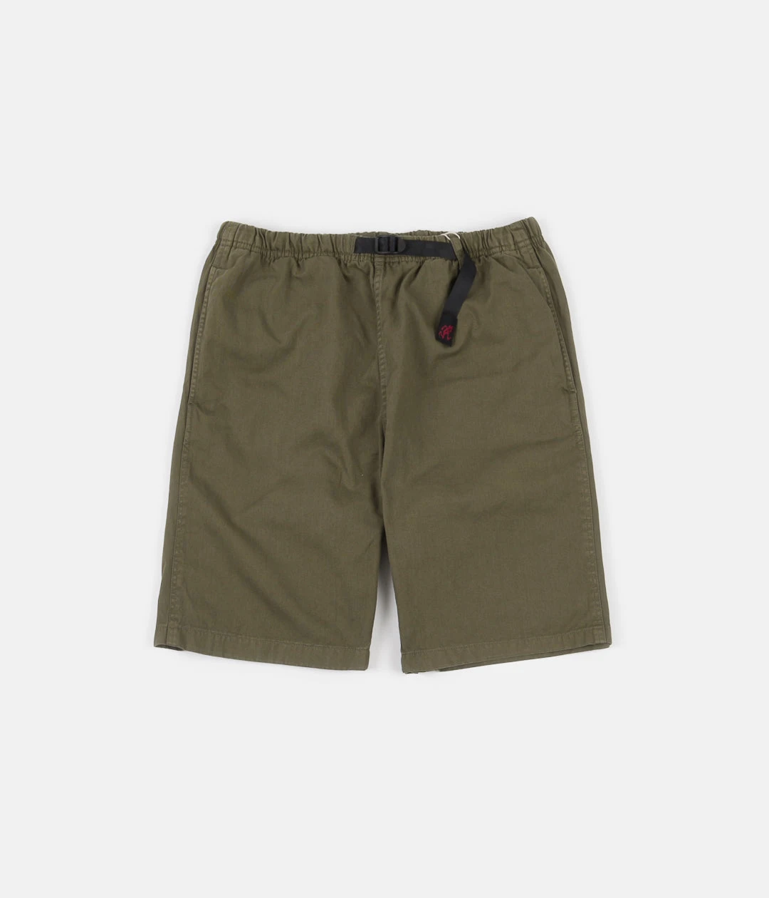 Gramicci G-Shorts in Olive. Arriving as part of the brand’s latest SS21 release, these Gramicci G-Shorts have been constructed from 100% double-ringspun cotton to deliver a long-lasting and enhanced wear through both leisure and skate use. Fitted with a Flex-fit elasticated waistband and a secure built-in nylon belt, these waist-height shorts are designed with the modern-day explorer in mind. The two slash pockets either side of the waist offer plenty of space to stash a phone, wallet or other must-have accessories whilst the addition of two more welt-style pockets on the rear are ideal for keeping smaller items concealed. Finished with a practical gusseted crotch, reinforced lock-stitching throughout and with signature ‘Gramicci’ detailing on the belt tag and on the rear right pocket, these performance-led shorts deliver the perfect blend between technical and fashionable.