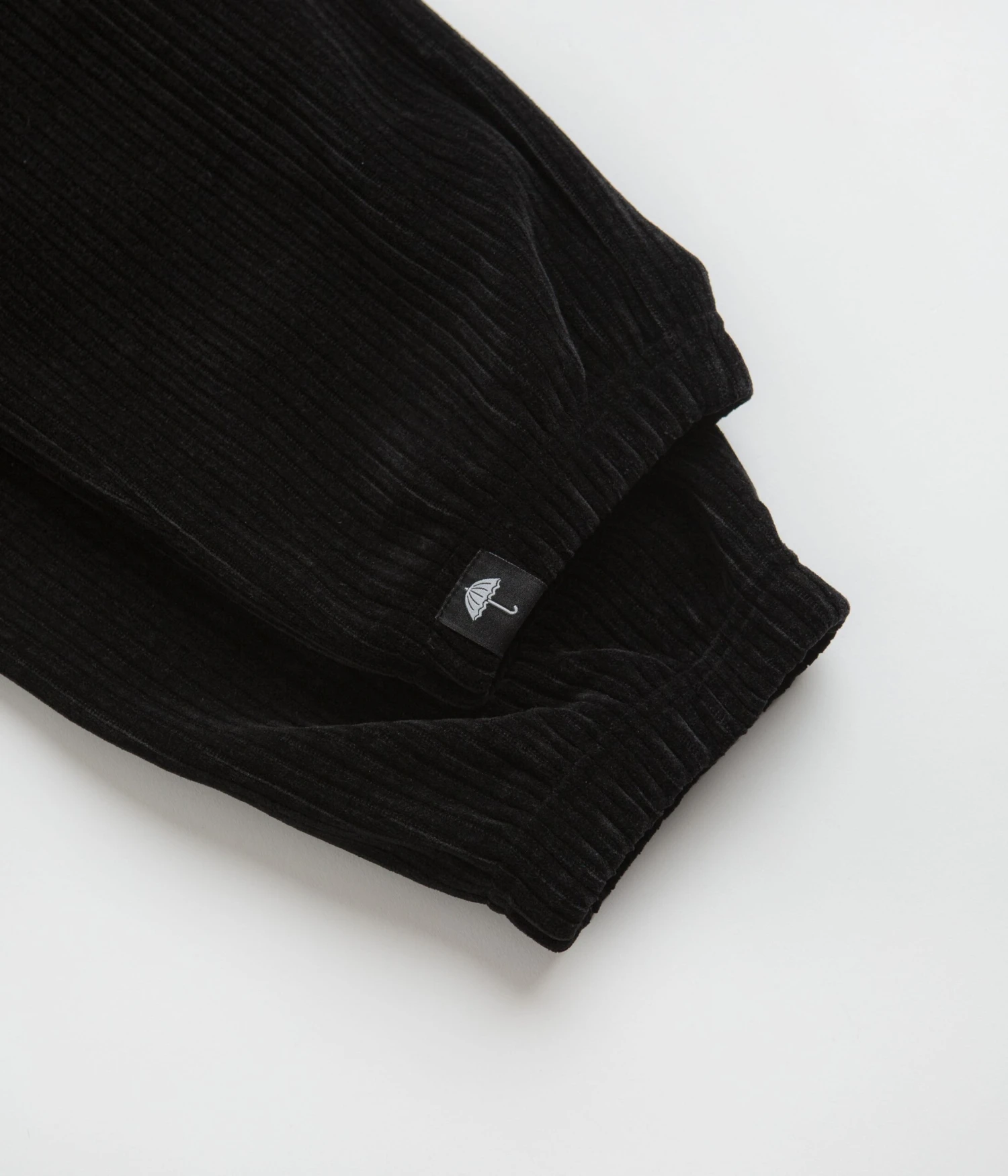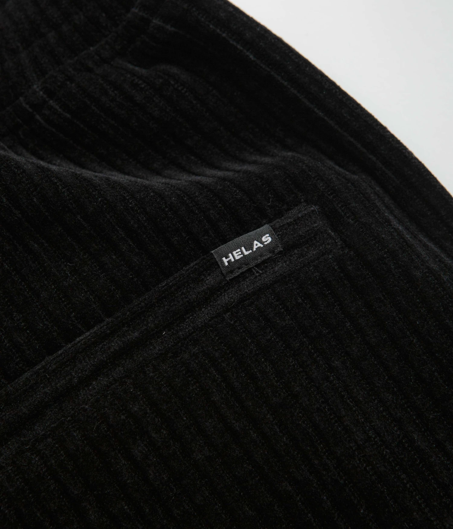 Hélas Damerino Sweatpants in Black. Made from a polyester-spandex blend, these colour block Hélas sweatpants are designed with a ribbed velour construction. Featuring an elasticated drawstring waist, elasticated cuffs and a tapered leg cut, these black Hélas sweatpants are finished with two front pockets, a single rear pocket and embroidered logo branding.