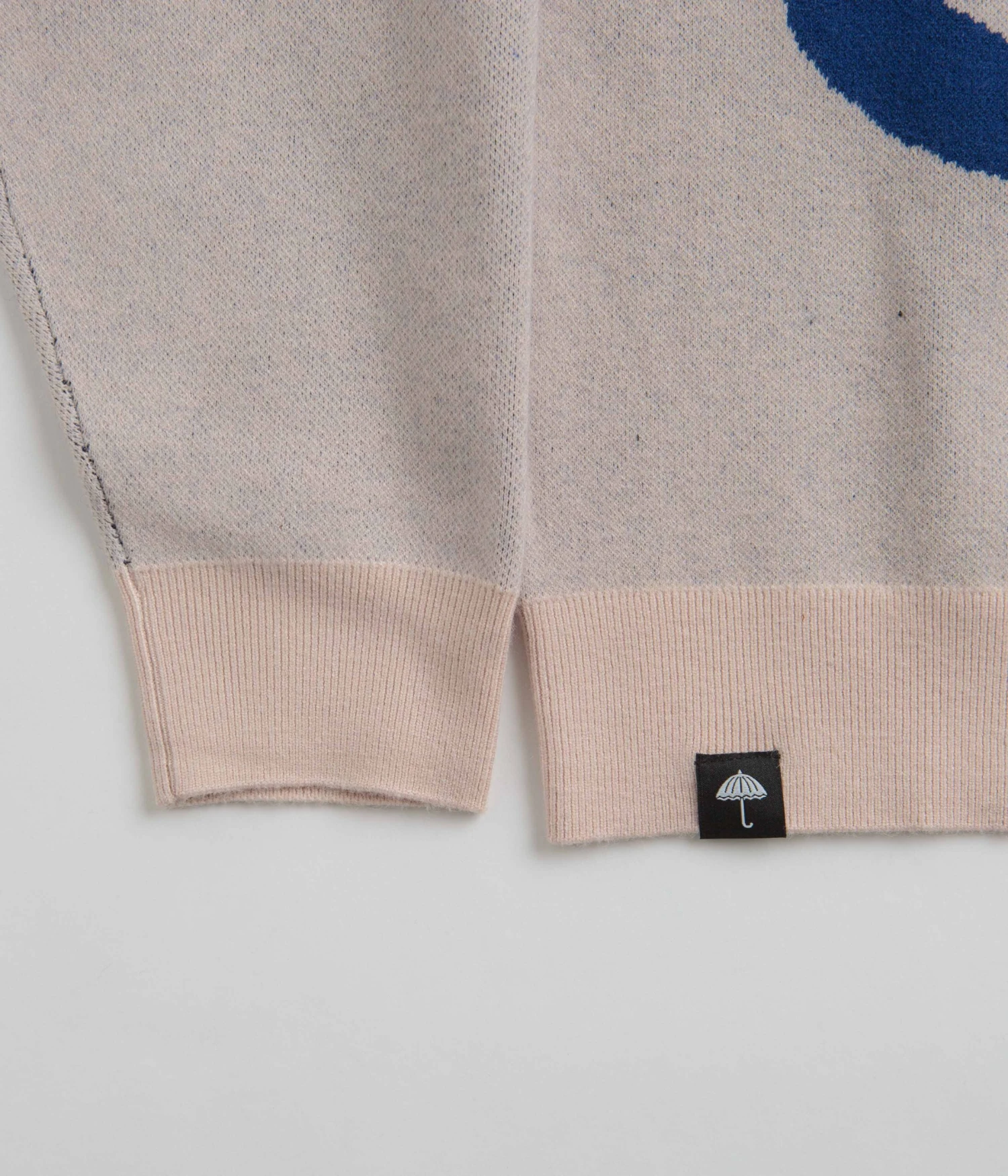 Hélas Nesta Knit Crewneck Sweatshirt in Cream. Made from a mix of acrylic, polyester and nylon and designed with a jacquard knit graphic, this Hélas sweatshirt is tailored to a regular fitting with a rib knit collar. Featuring ribbed cuffs and a woven elastic hem, this cream Hélas sweater is finished with tonal stitched seams and with an inner neckline flag label.