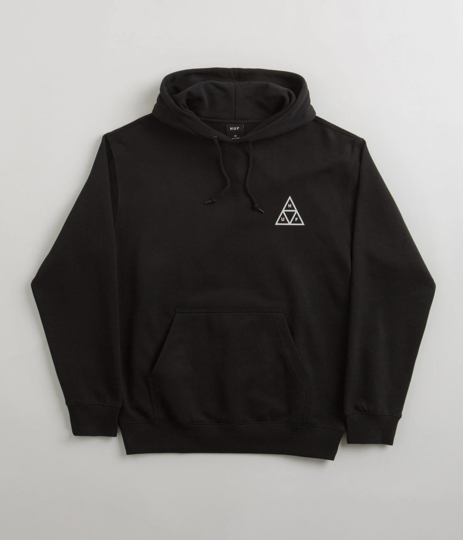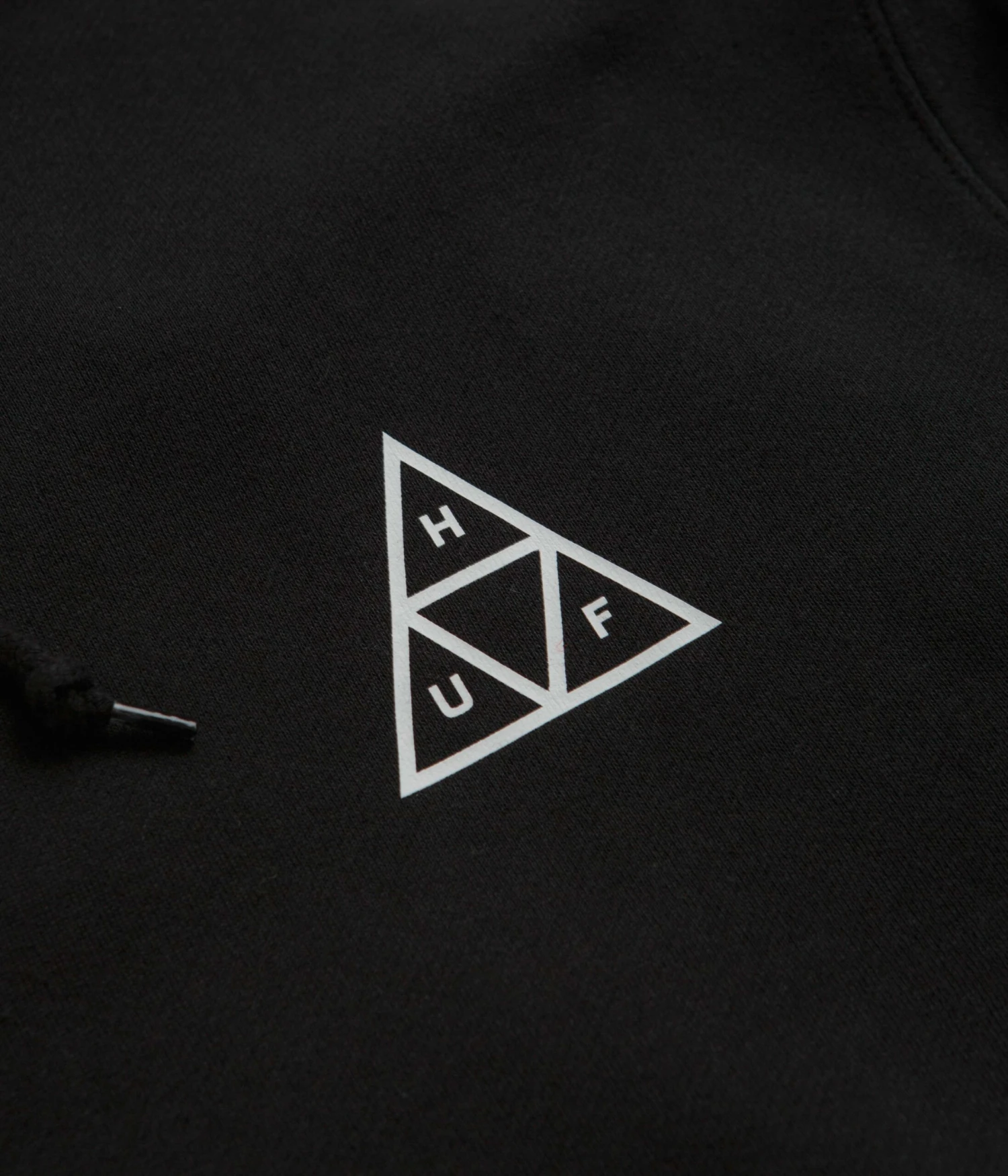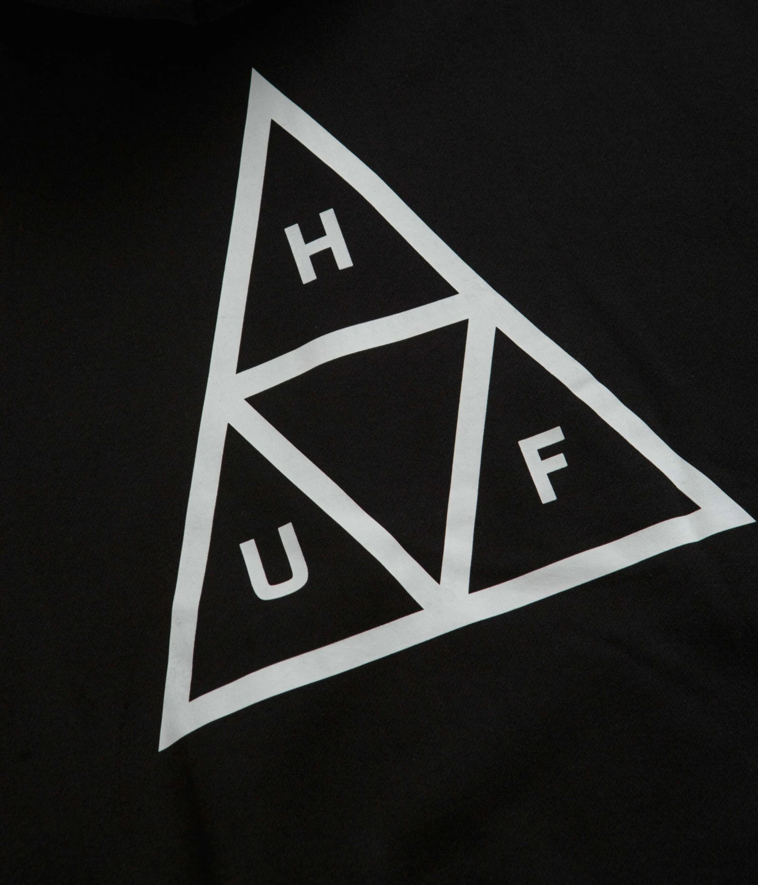 HUF Set Hoodie in Black. Made from a cotton-polyester fleece blend and tailored to a regular fitting, this block tone HUF hoodie arrives as part of the brand’s latest capsule collection. Inspired by an appreciation for everyday essentials, this black HUF hoodie is styled with a drawstring hood, rib knit cuffs, a classic kangaroo front pocket and with a screen printed box logo displayed across the centre chest.