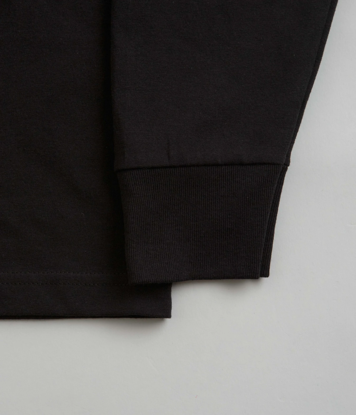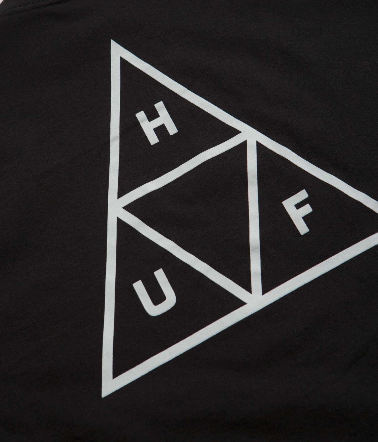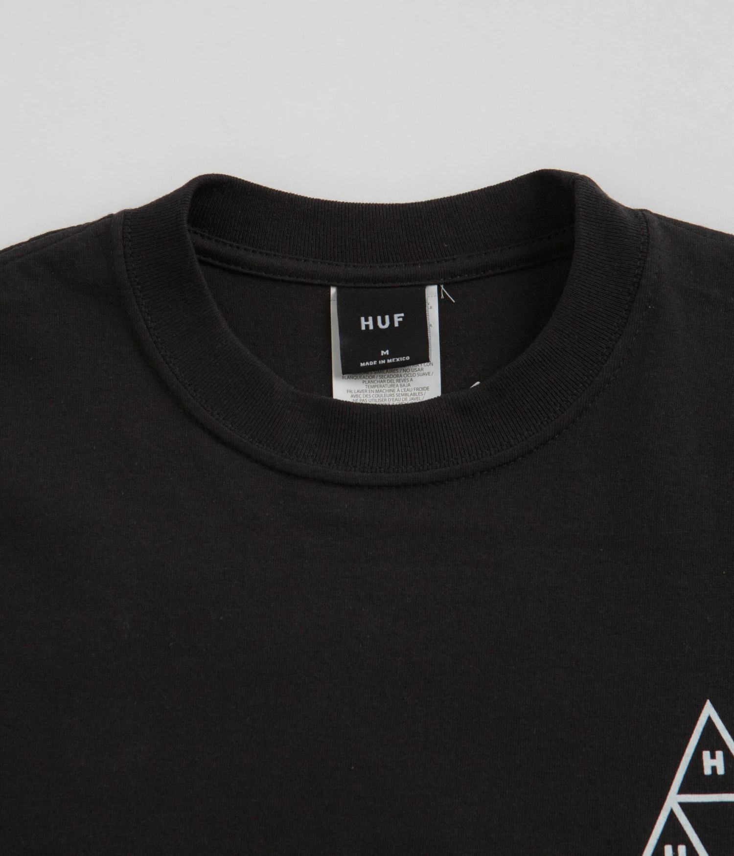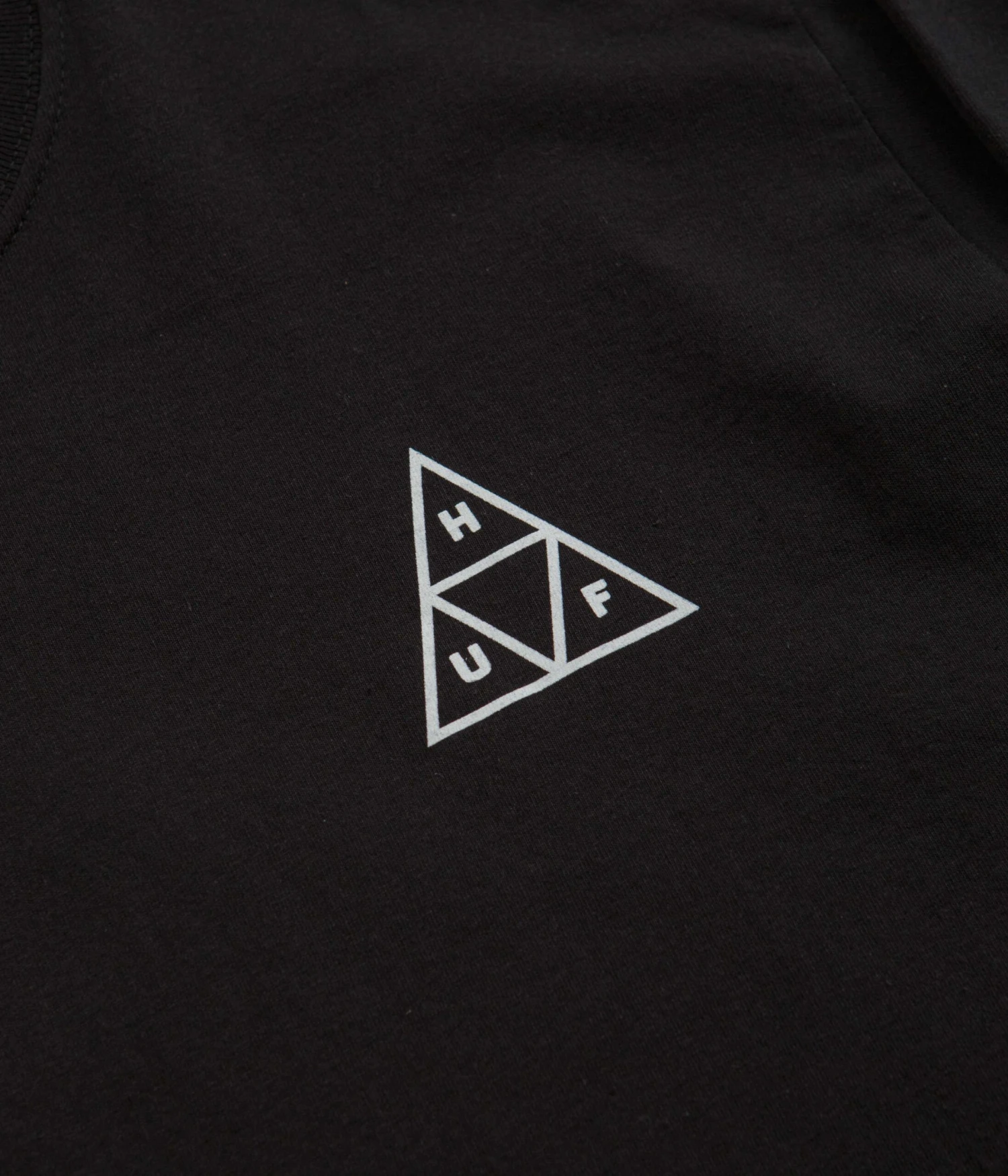 HUF Set TT Long Sleeve T-Shirt in Black. Made from 100% midweight cotton, this colour block HUF t-shirt is tailored to a regular fitting with a classic crew collar. Finished in a shade of black with ribbed cuffs and with printed front and rear graphics.