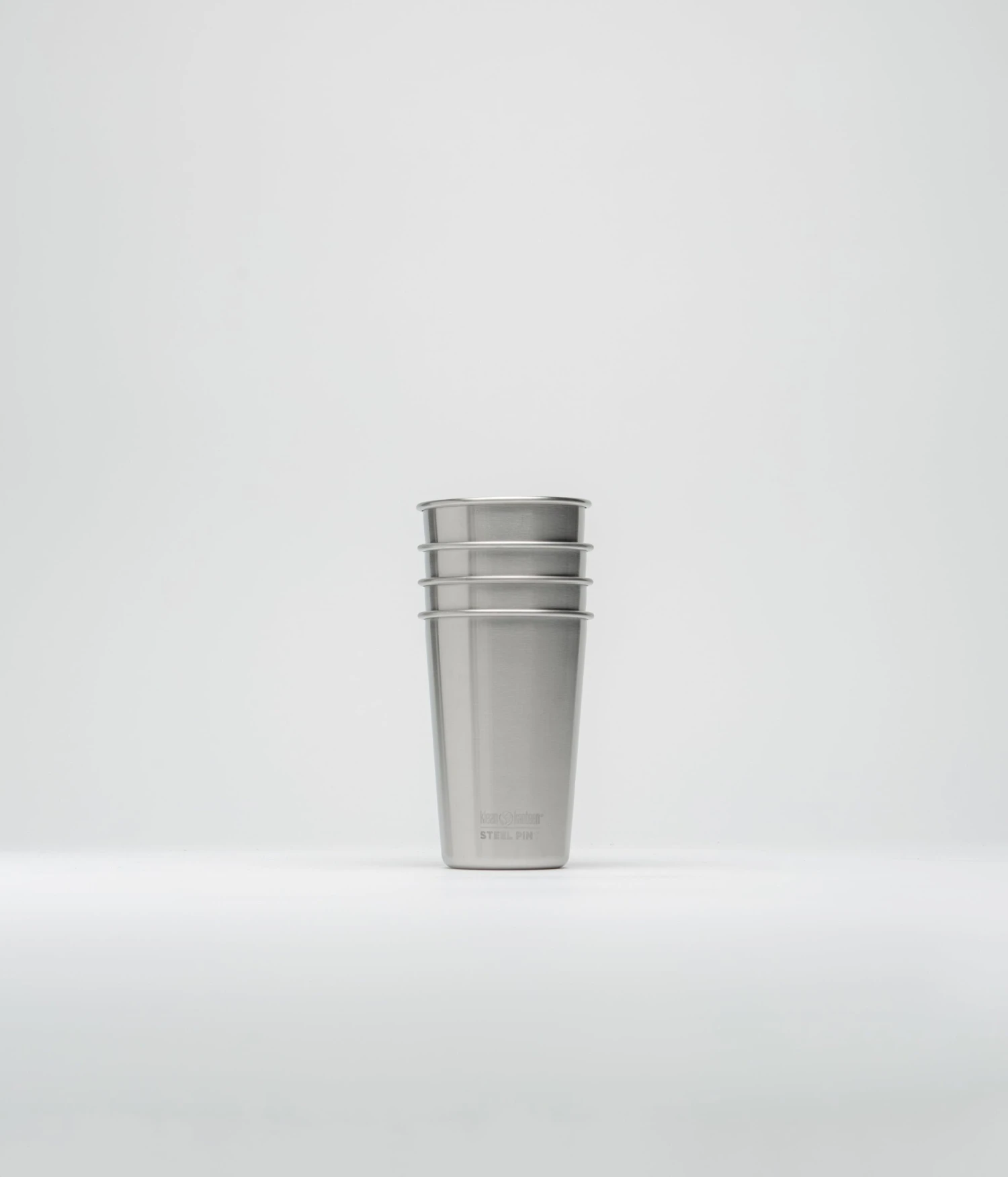 Klean Kanteen 473ml Steel Cup 4 Pack in Brushed Stainless. Made from 18/8 stainless steel, these Klean Kanteen cups are designed with an electropolished interior with a rounded lip. Available as a set of four, these brushed steel Klean Kanteen cups are designed to be compatible with the brand’s Tumbler and Straw Lids.