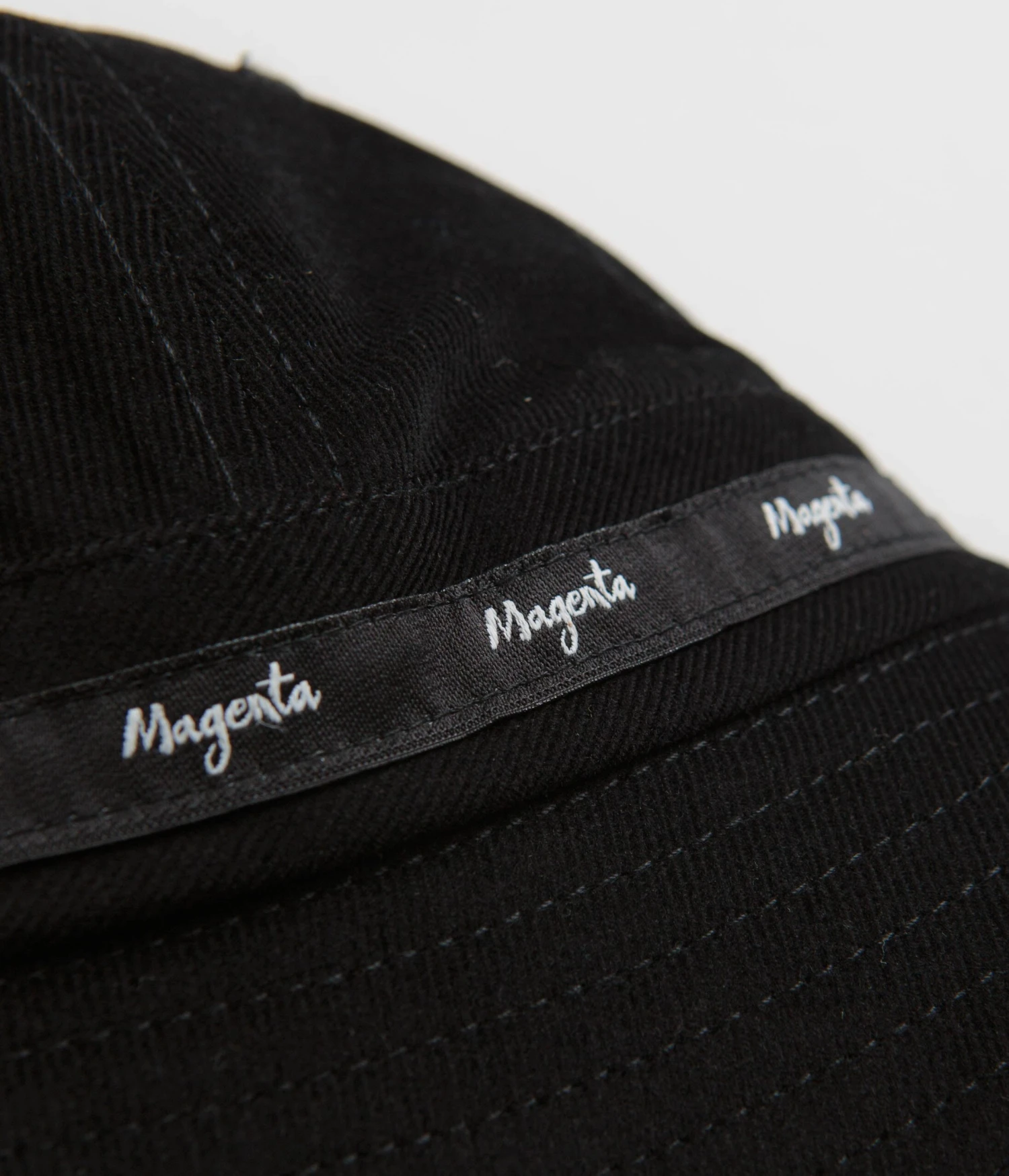 Magenta Script Cord Bucket Hat in Black. Single sized and made from 100% cotton corduroy, this Magenta bucket hat is designed with a reinforced brim and an adjustable lace-lock fastening. Finished with embroidered eyelets, this black Magenta bucket hat is finished with wrap-around label tape branding.