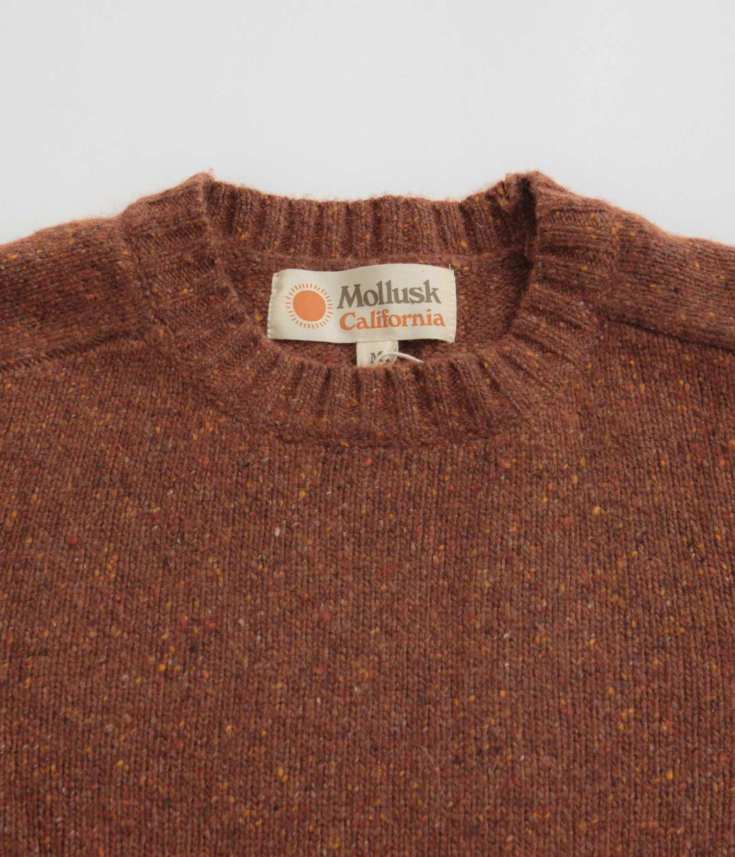 Mollusk Cambridge Sweatshirt in Mars. Tailored to a regular fitting from merino wool blend, this marled Mollusk sweatshirt is designed with a rib knit collar and thick rib cuffs. Finished in a shade of speckled red with a thick rib woven elastic hem.