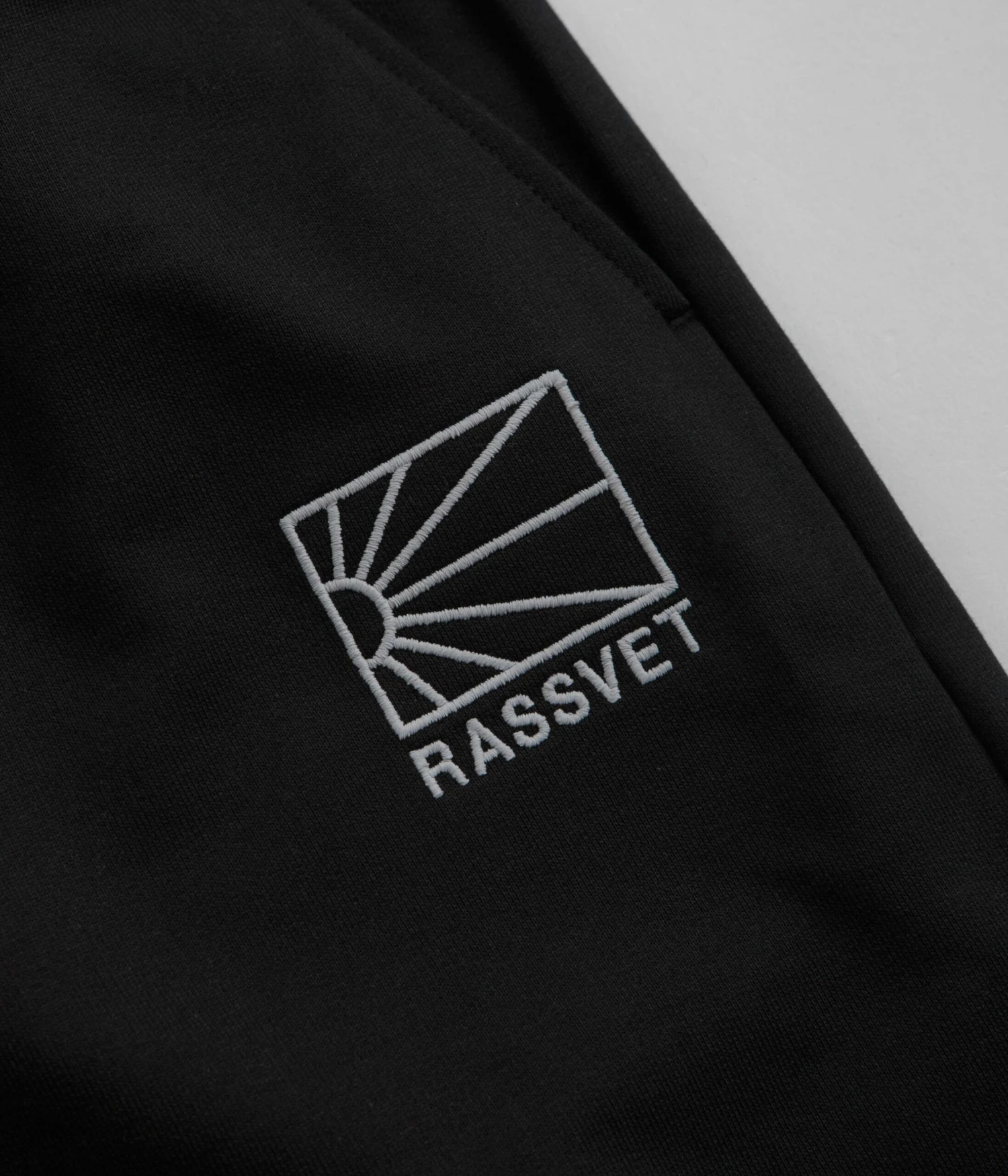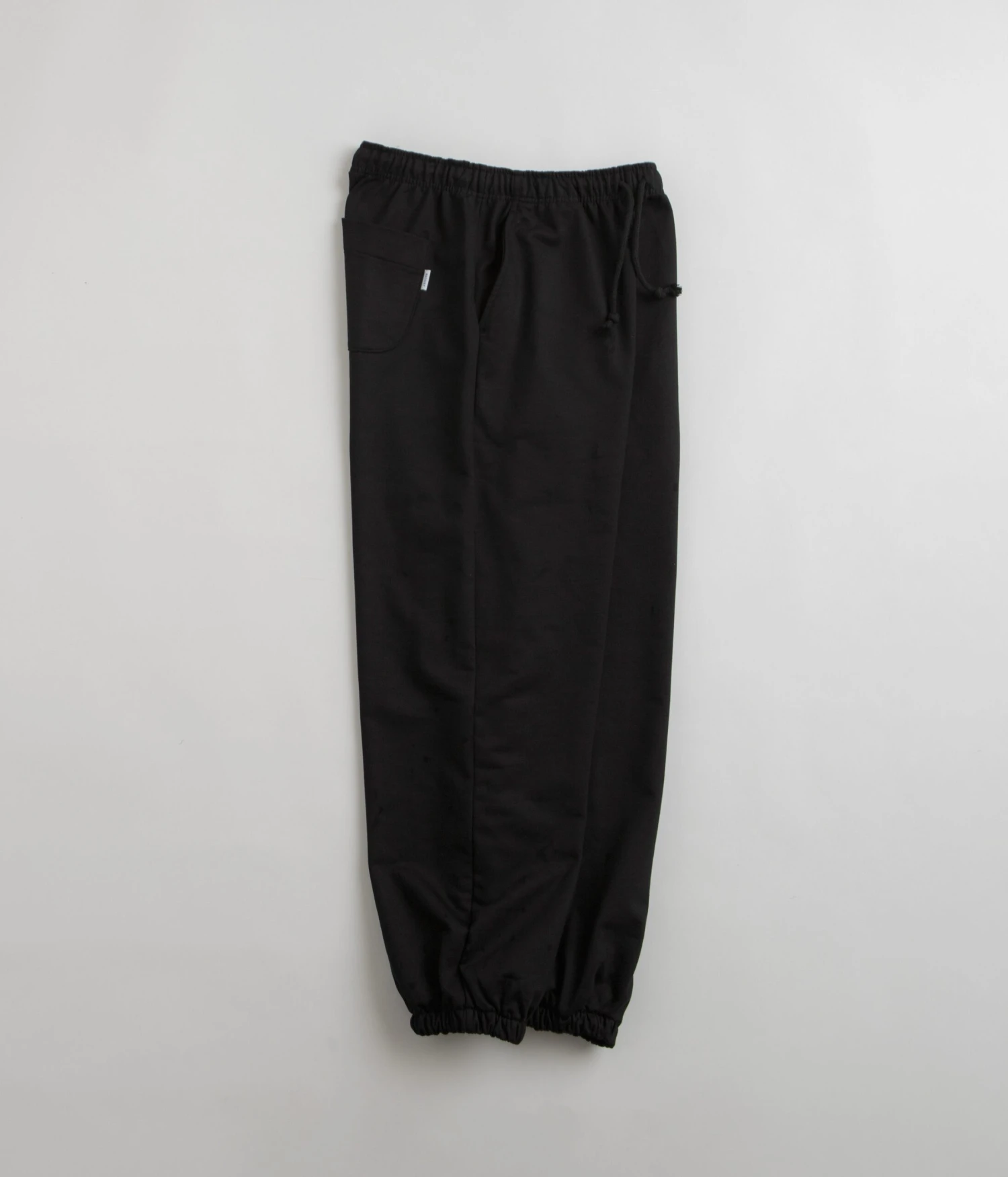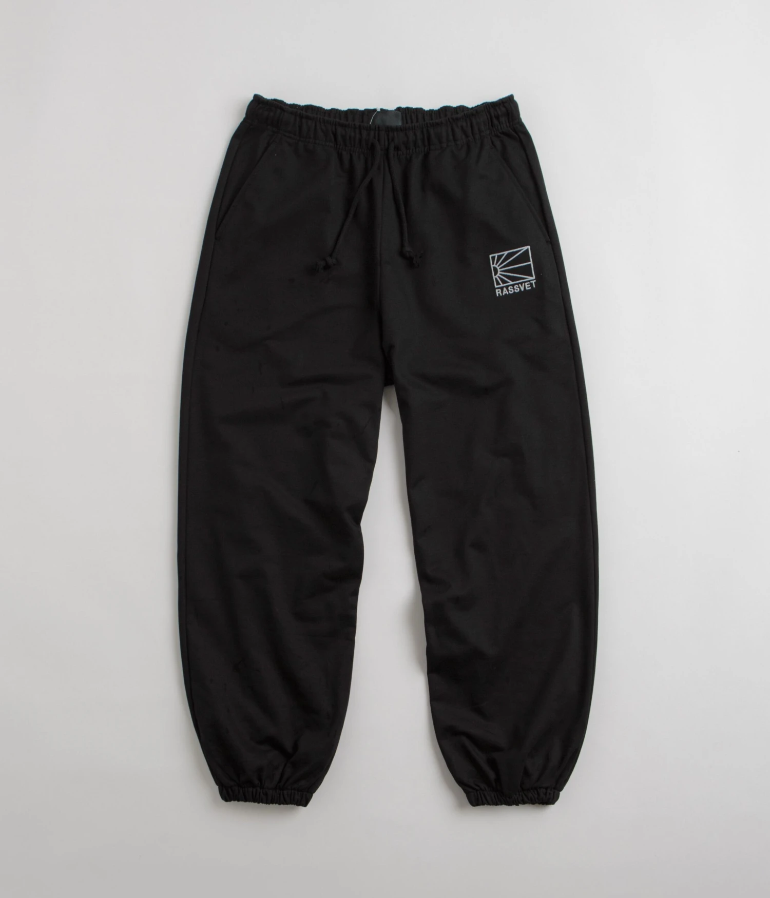 PACCBET Mini Logo Sweatpants in Black. Regular fitting and made from 100% cotton, these PACCBET sweatpants are designed with an elasticated drawstring waist. Finished in a shade of black with ribbed cuffs, two side pockets, two rear pockets and with printed logo branding.