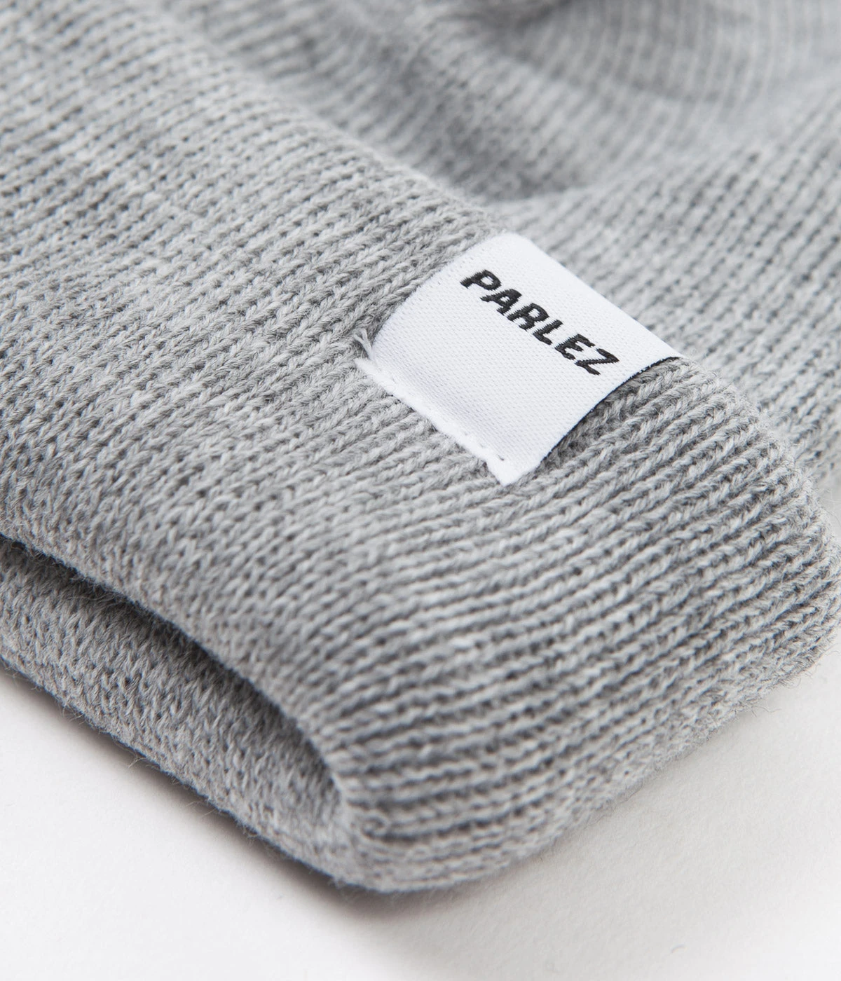 Parlez Flatholm Beanie in Heather. Part of the brand’s latest collection, this single sized Parlez beanie is made from 100% merino wool. Featuring a stretchable rib knit face and an adjustable turn-up cuff, this grey Parlez beanie draws inspiration from classic fishermans styles with a woven flag label.
