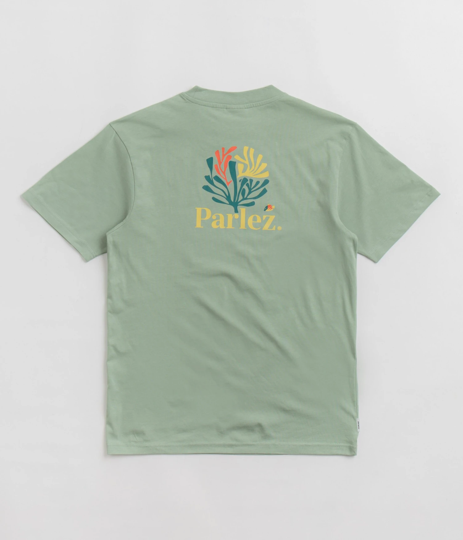 Parlez Revive T-Shirt in Sea Mist. Made from 100% cotton, this new season Parlez t-shirt is GOTS certified and is styled with a classic crew collar and a straight cut hem. Finished in a shade of mint green with printed front and rear graphics.