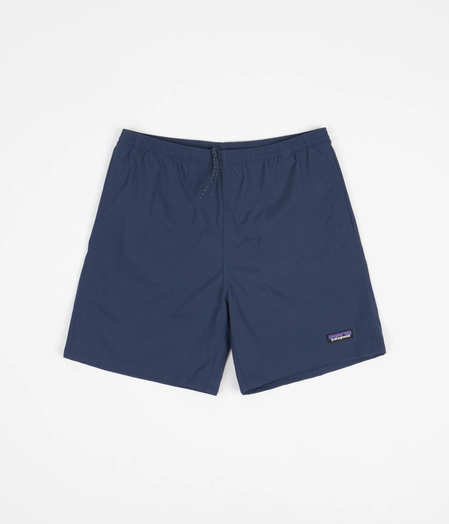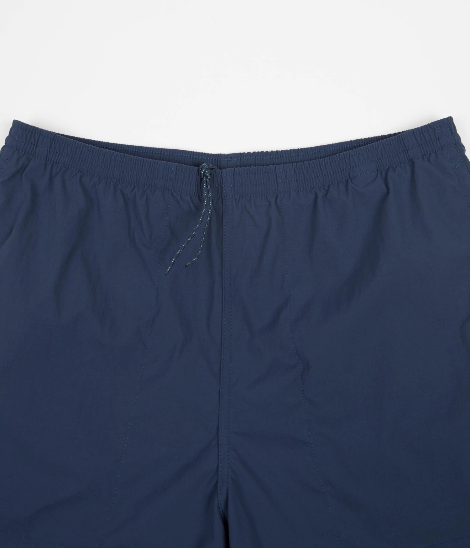 Patagonia Baggies Lights Shorts NetPlus® in Tidepool Blue. Helping reduce ocean plastic with a construction crafted from NetPlus® 96% postconsumer recycled nylon faille and 4% elastane, these above-knee Patagonia shorts are tailored to a slim fit and are Fair Trade Certified sewn. With a 6.5” inseam and a PFC-free DWR coated finish, these quick drying baggies shorts feature a woven elastic waist, an integrated drawcord fastening and a breathable mesh lined interior for added comfort. Two drain-and-dry mesh pockets can be found either side of the waist, the right doubling as an integrated stuffsack, with classic embroidered P-6 flag label branding sealing the design above the left cuff.