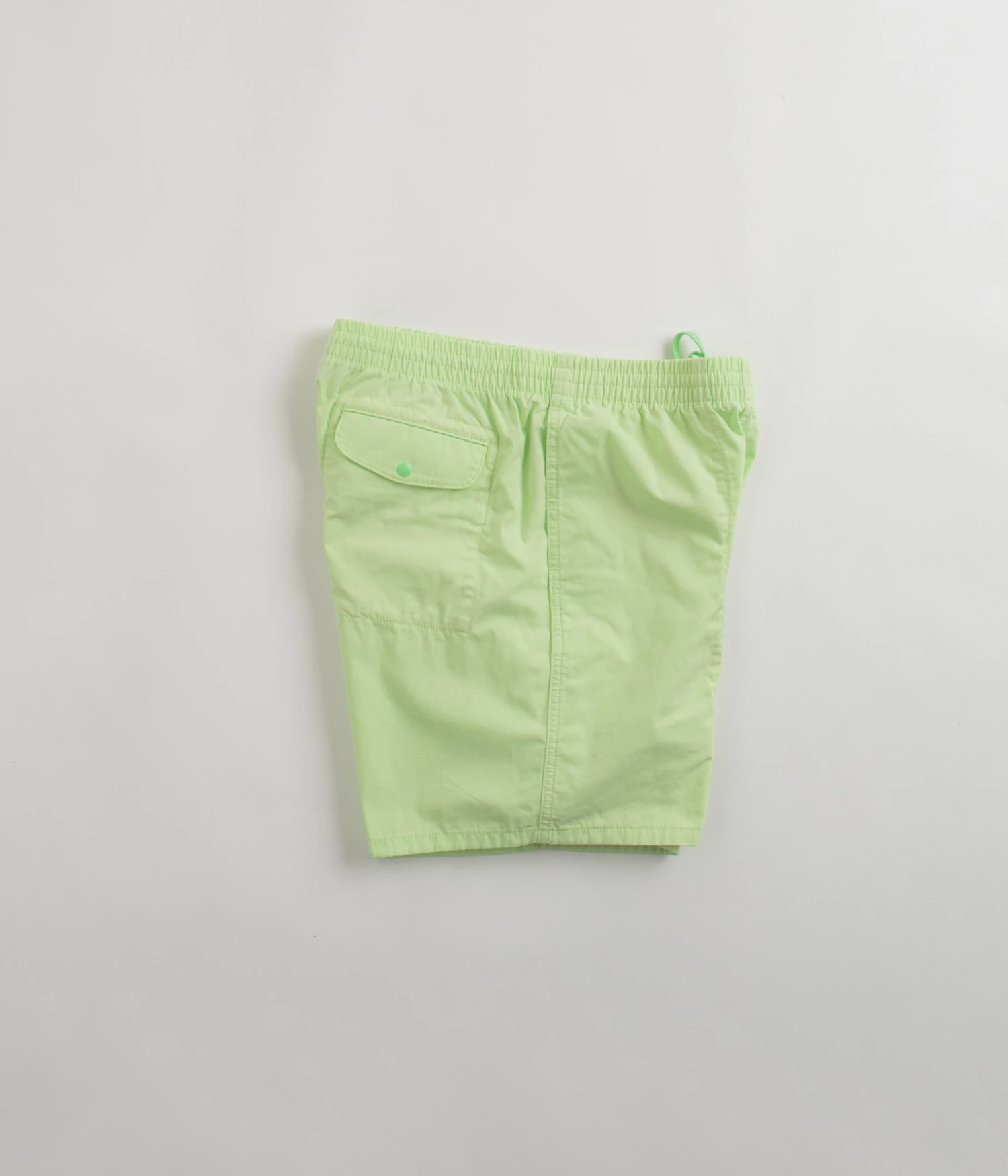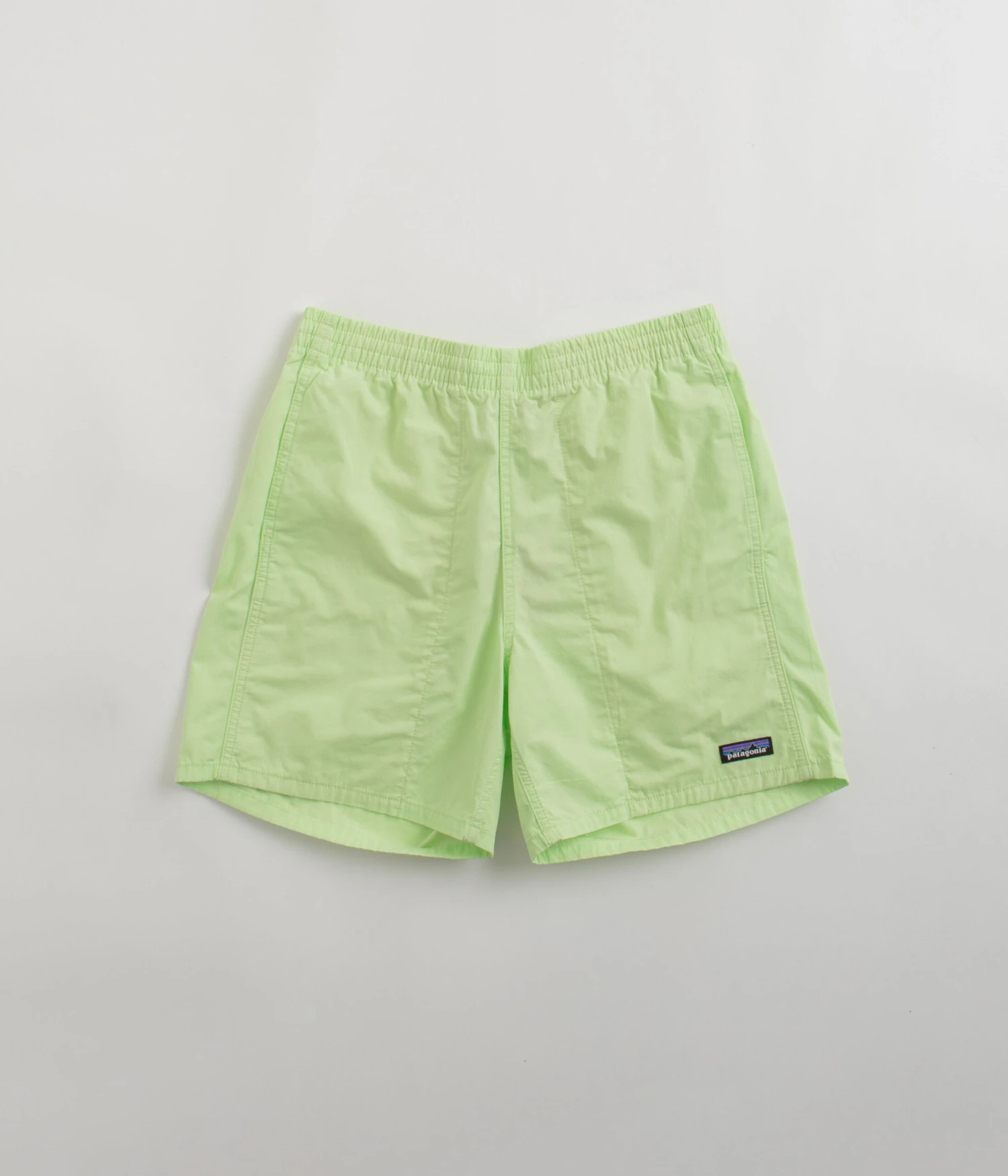 Patagonia Funhoggers Shorts in Salamander Green. Tailored to a regular fitting from 100% Cotton in Conversion plain weave fabric, these block tone Patagonia shorts are designed with an elasticated waist and a 6” inseam. Featuring two side pockets and a single rear pocket, these green Patagonia shorts are finished with a woven P-6 flag label.