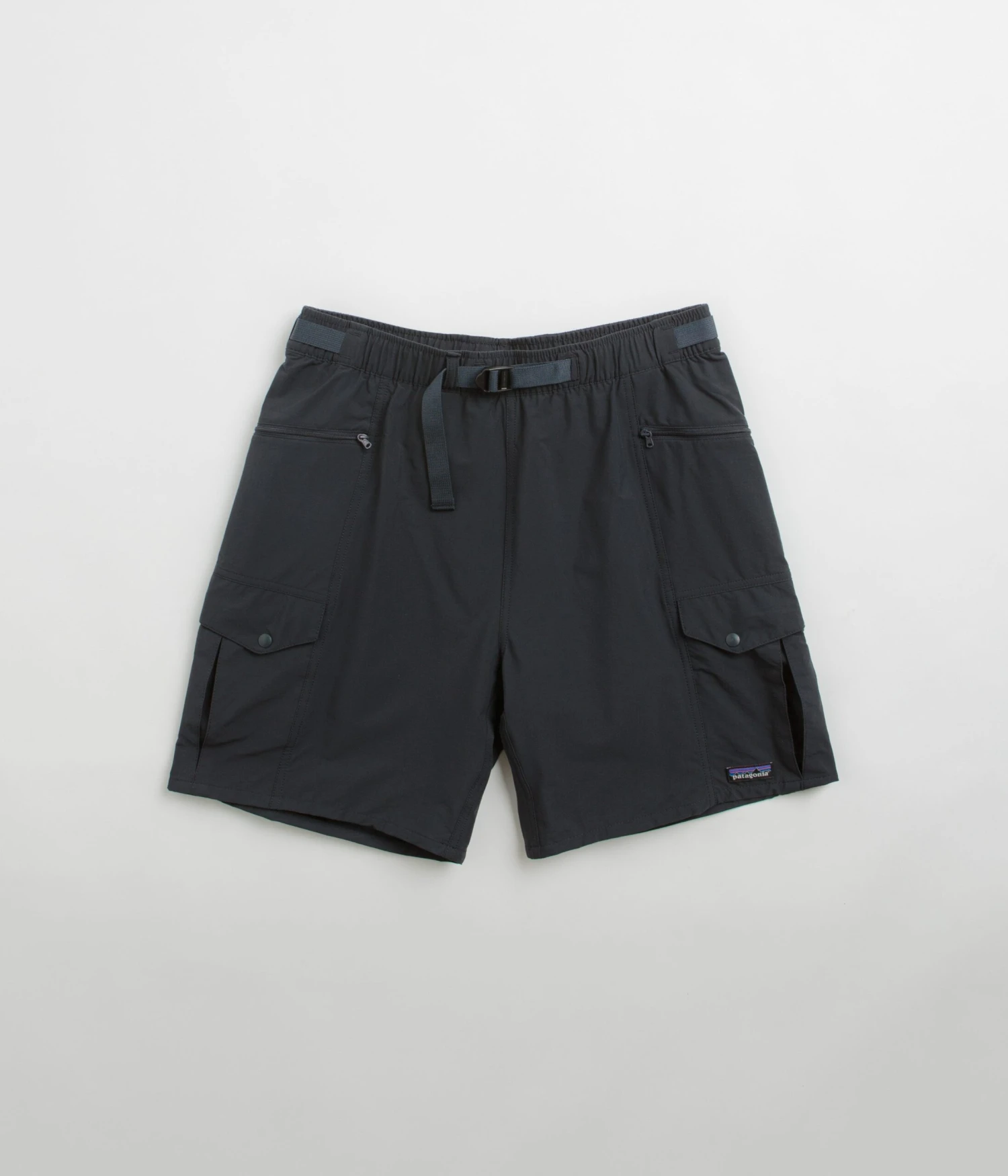 Patagonia Outdoor Everyday 7″ Shorts in Pitch Blue. Regular fitting and made from a nylon-elastane blend, these quick-drying Patagonia shorts are designed with an elasticated waist and an adjustable webbing belt. Featuring an unlined inner, flat-felled seams and a 7” inseam, these blue Patagonia shorts are finished with two zippered side pockets, a zippered rear pocket, additional cargo pockets and with P-6 flag label branding.