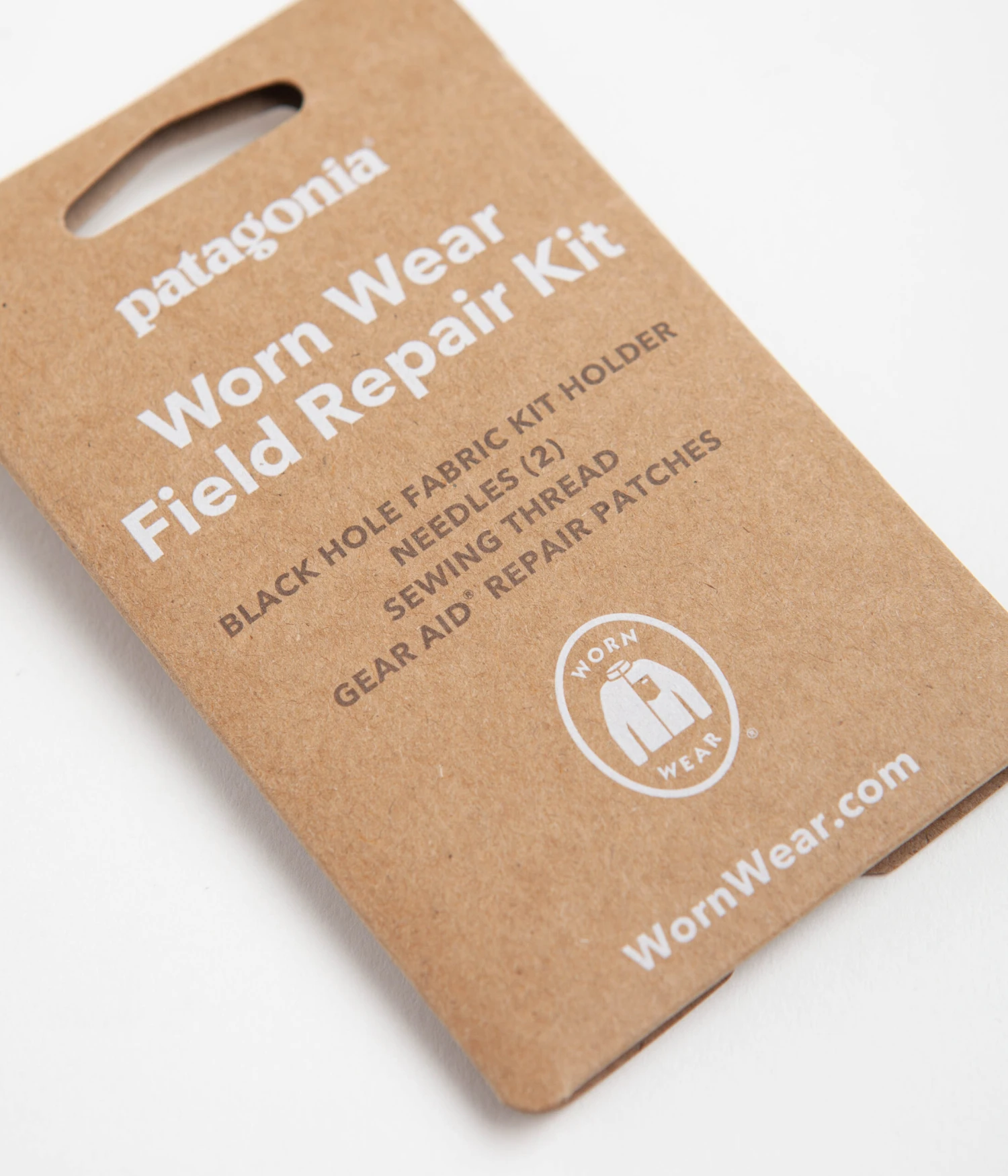 Patagonia Worn Wear Field Repair Kit in Black. Designed to be stored in any wallet, pocket or backpack, this Patagonia repair kit includes two sewing needles, polyester thread and Gear Aid® repair tape for quick and easy on-the-go garment repair.
