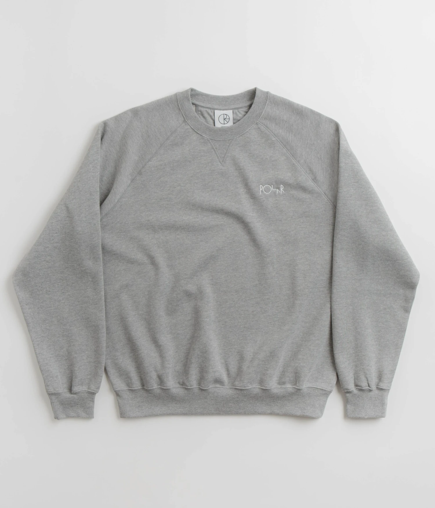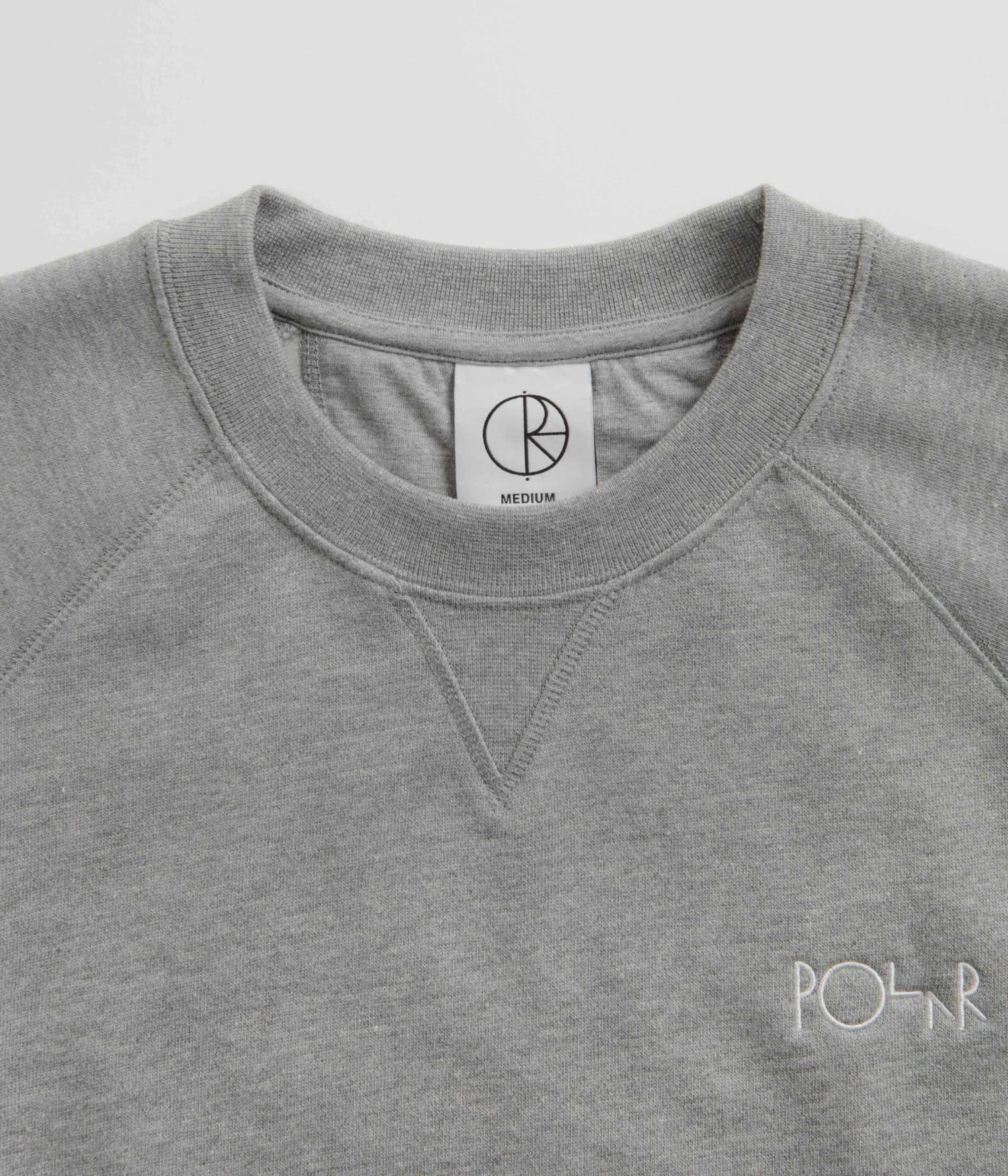Polar Default Crewneck Sweatshirt in Heather Grey. Tailored to a regular fitting from a cotton/poly blend, this Polar sweatshirt arrives as a returning favourite from the brand’s latest release. With a soft brushed interior and a noted sportswear undertone, this Polar Skate Co. sweater features cuffed raglan style sleeves, a thick rib woven elastic hemline and a crew neck collar that features a V-insert trim. Embroidered across the left chest, crisp white ‘Polar’ branding is displayed for a contrasting finish across its marled grey composure.