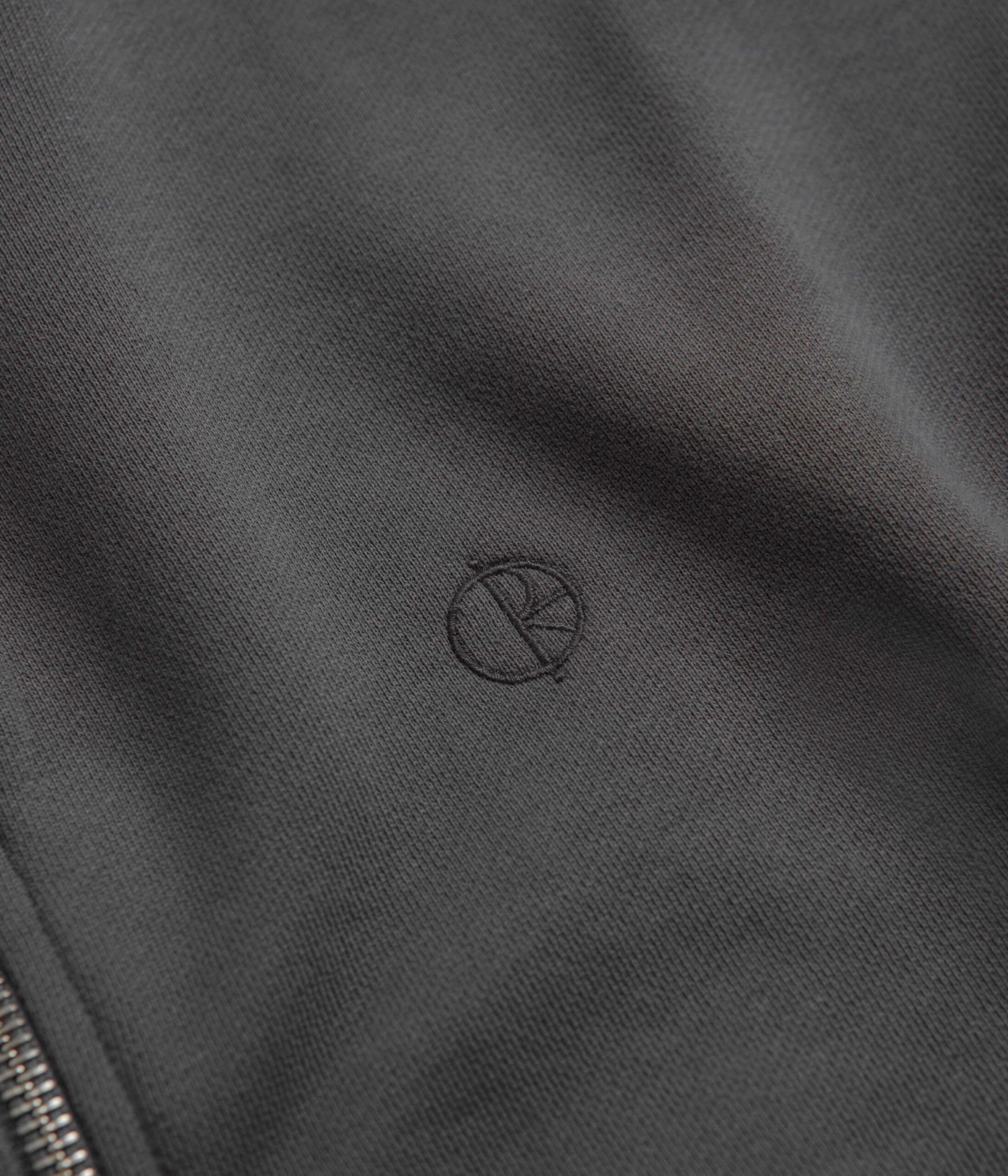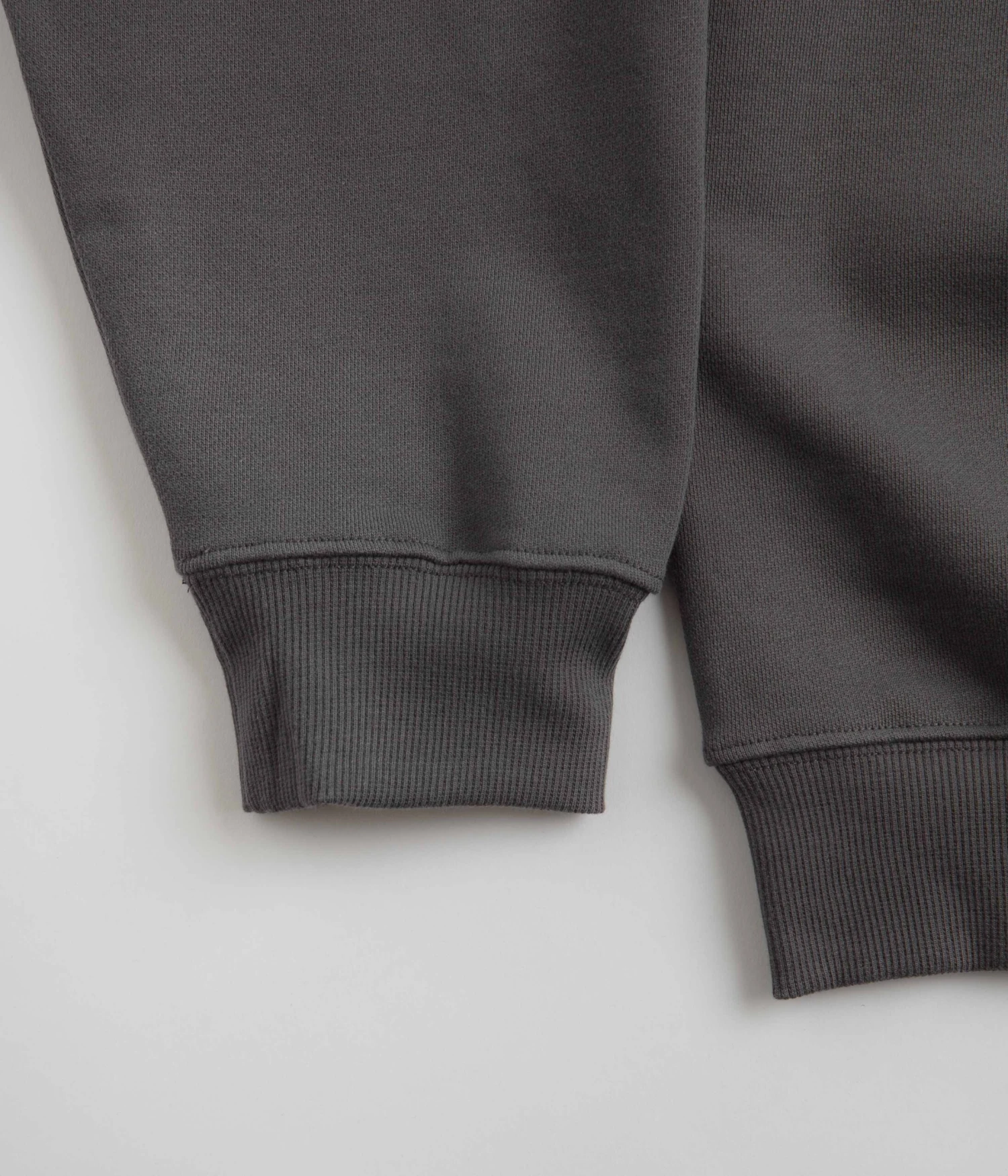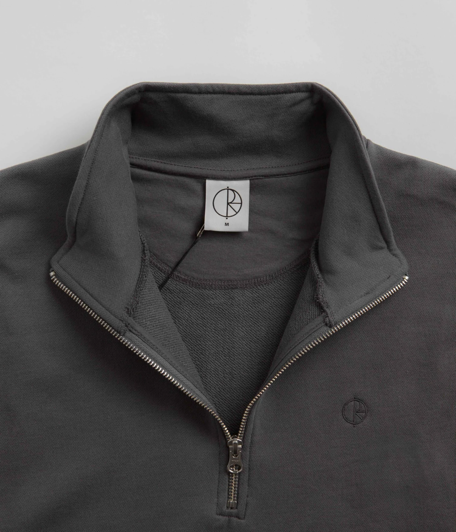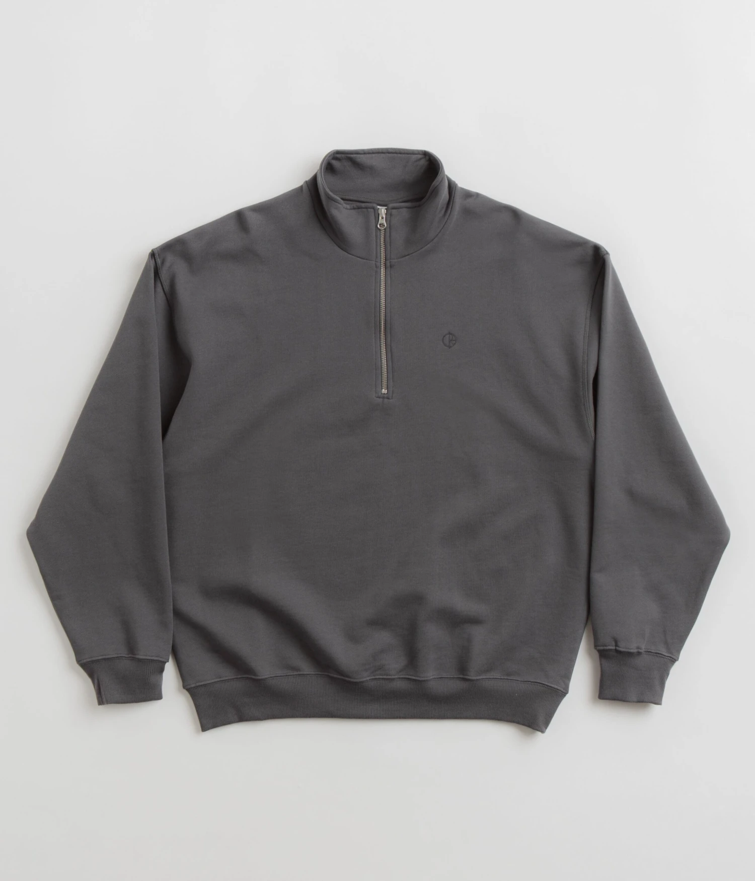 Polar Frank Half Zip Sweatshirt in Graphite. Regular fitting and made from 100% cotton, this unbrushed Polar sweatshirt is designed with a half-length zipper fastening. Featuring dropped shoulders, bat sleeves, ribbed cuffs and a woven elastic hem, this grey Polar sweater is finished with tonal logo embroidery.