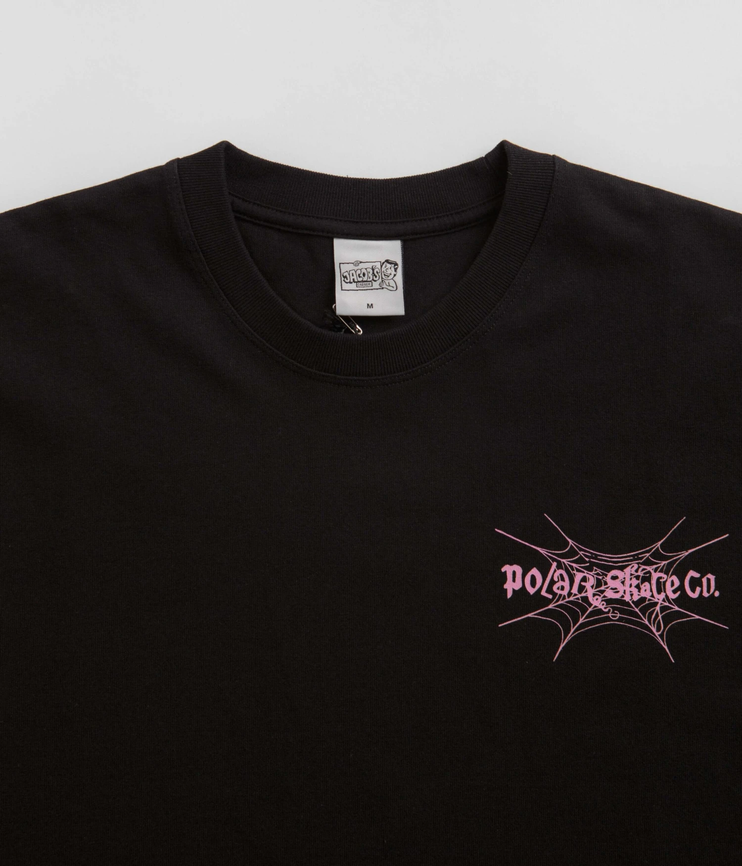 Polar Spiderweb T-Shirt in Black. Featuring custom artwork by Jacob Ovgren, this colour block Polar t-shirt is made from 100% cotton. Featuring a classic crew collar and a straight cut hem, this black Polar t-shirt is finished with printed left chest artwork.
