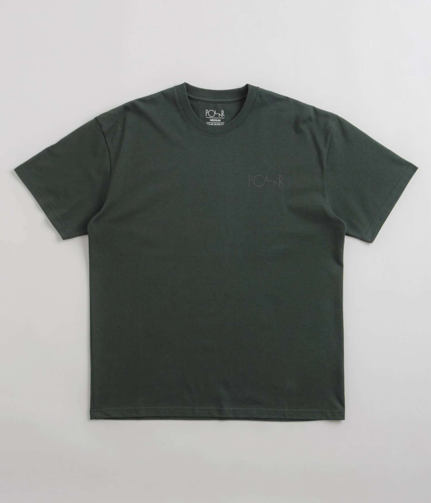 Polar Stroke Logo T-Shirt in Green. Regular fitting and made from 100% cotton, this new season Polar t-shirt is designed with a classic crew collar and a straight cut hem. Finished in a shade of green with dropped shoulders and with screen printed front and rear graphics.