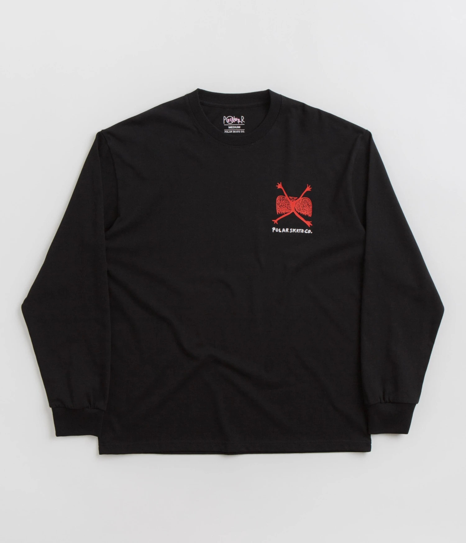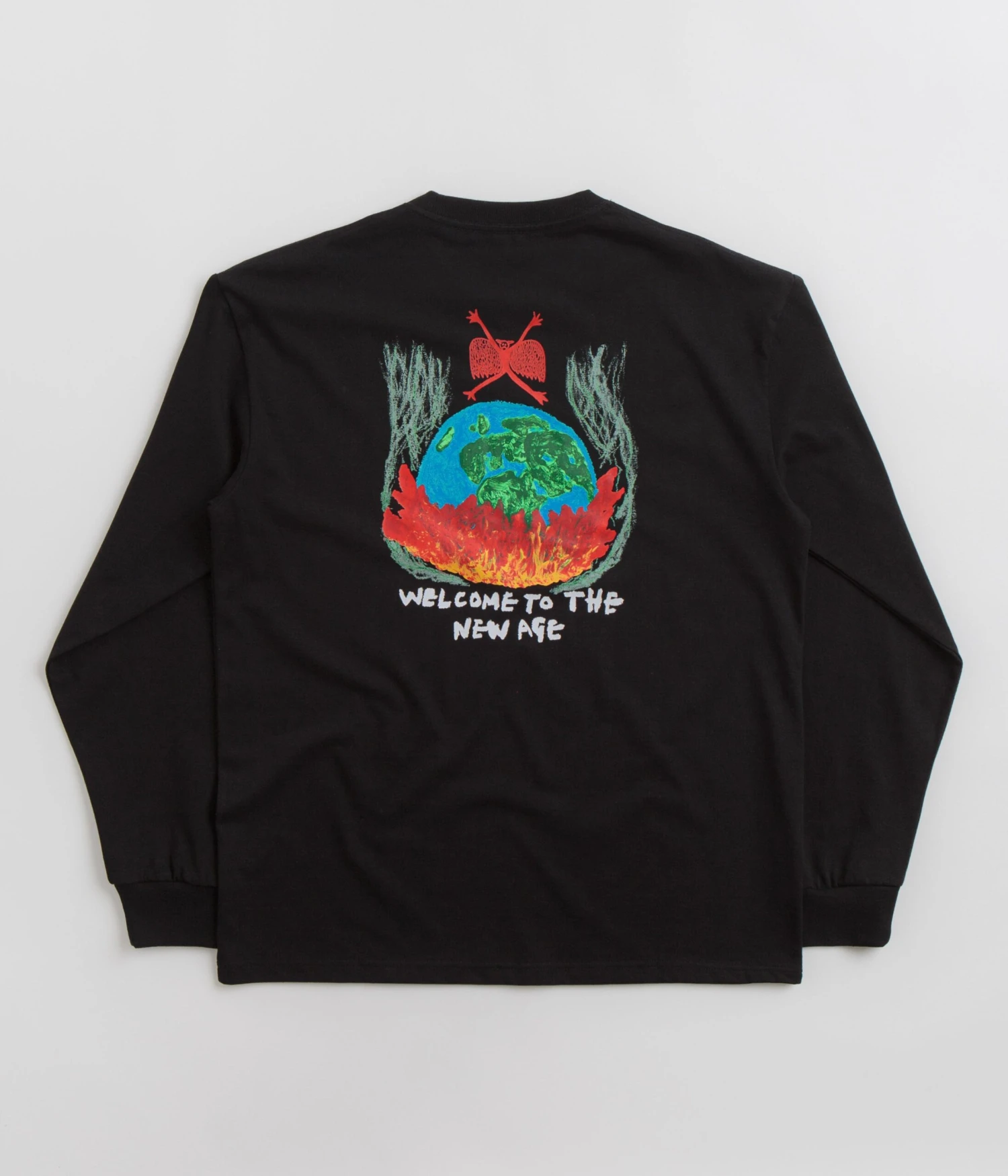 Polar Welcome To The New Age Long Sleeve T-Shirt in Black. Tailored to a regular fitting from 100% cotton, this pre-washed Polar t-shirt arrives as part of the brand’s latest release. Featuring a flexible rib knit collar and a straight cut hem, this black Polar t-shirt is finished with ribbed cuffs and with exclusive artwork by Sirus F. Gahan printed across both the left chest and reverse.