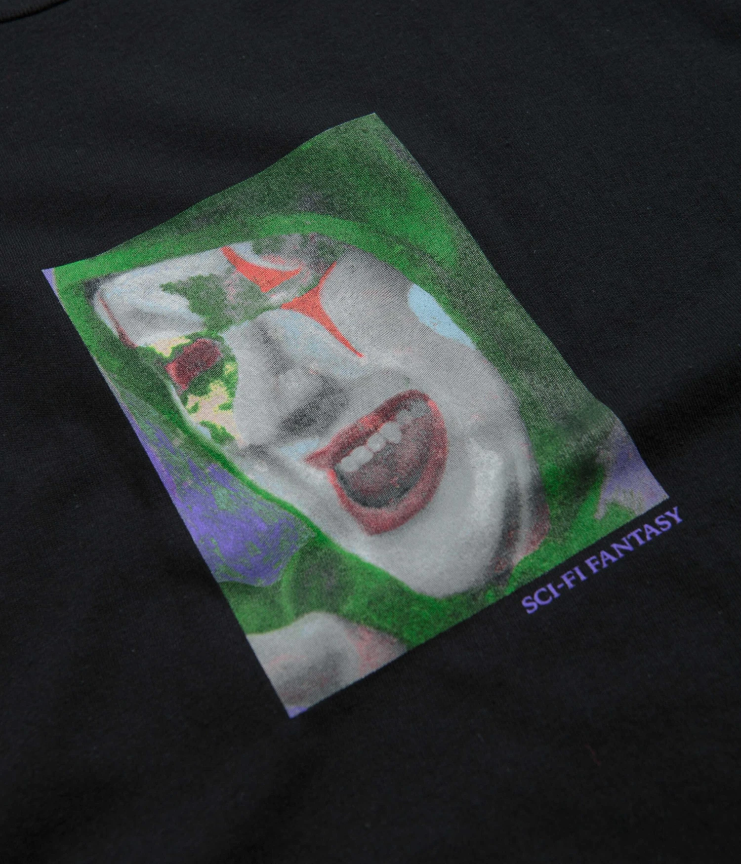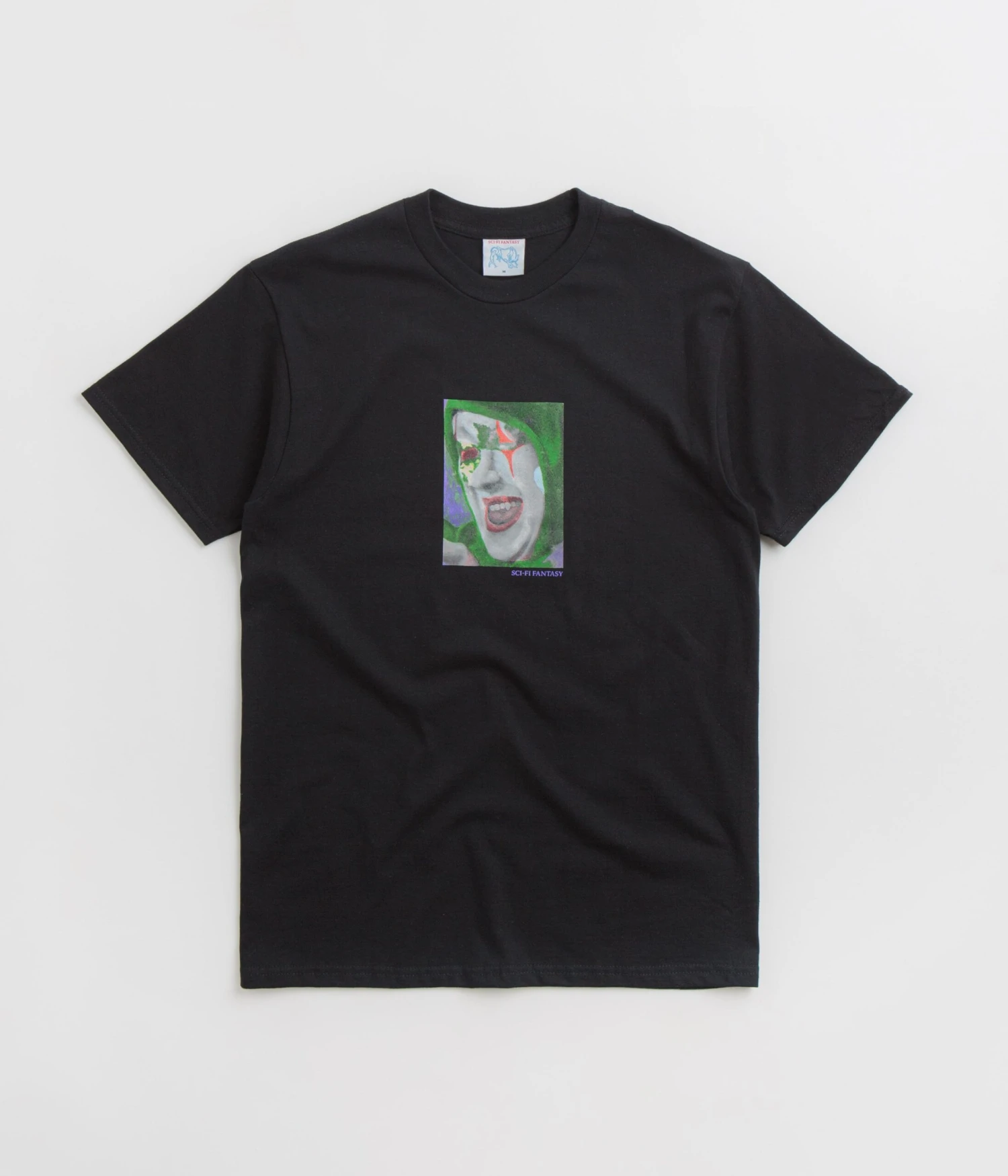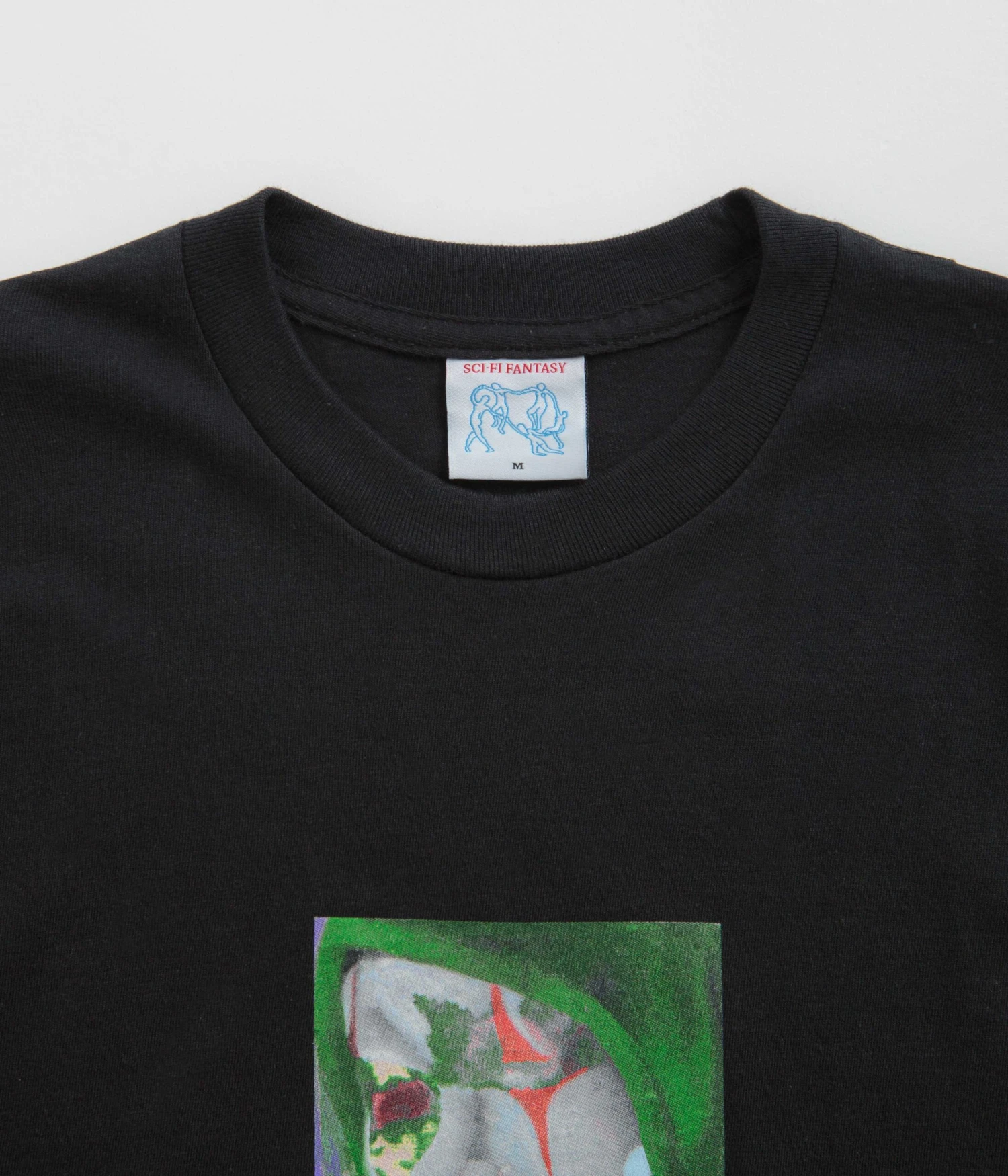 Sci-Fi Fantasy Alessi T-Shirt in Black. Made from 100% cotton and tailored to a regular fitting, this block tone Sci-Fi Fantasy t-shirt arrives as part of the brand’s Fall Autumn ‘22 collection. Featuring a flexible rib knit collar and a straight cut hem, this black t-shirt is finished with screen printed centre chest artwork.