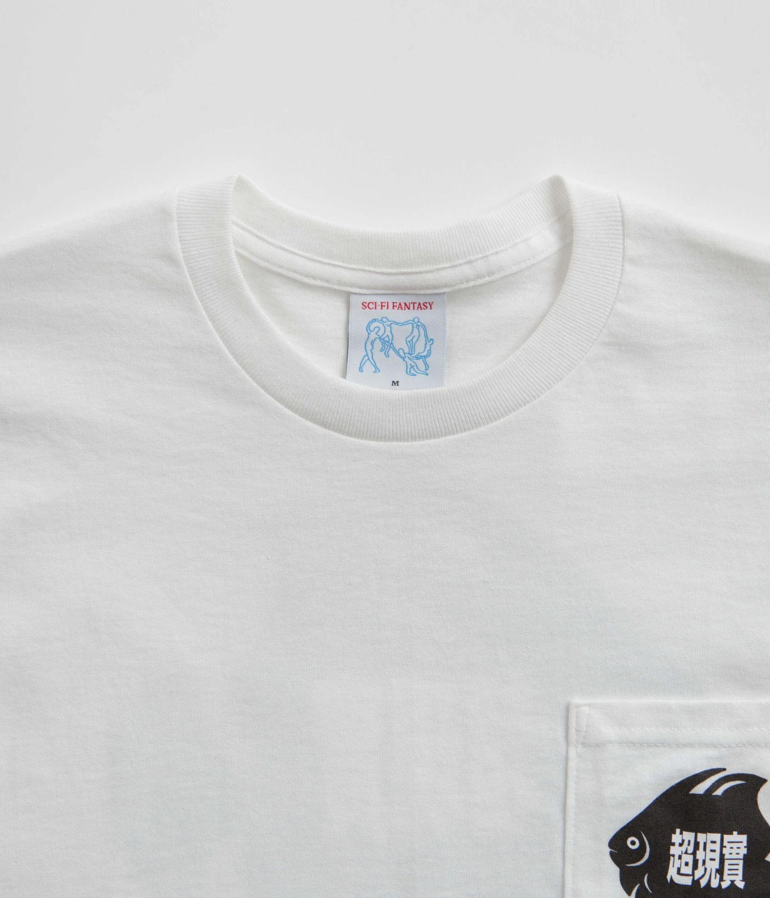 Sci-Fi Fantasy Fish Pocket T-Shirt in White. Made from 100% cotton, this Sci-Fi Fantasy t-shirt arrives as part of the brand’s latest collection. Featuring a classic crew collar and a straight cut hem, this white Sci-Fi Fantasy t-shirt is finished with printed front and rear graphics.