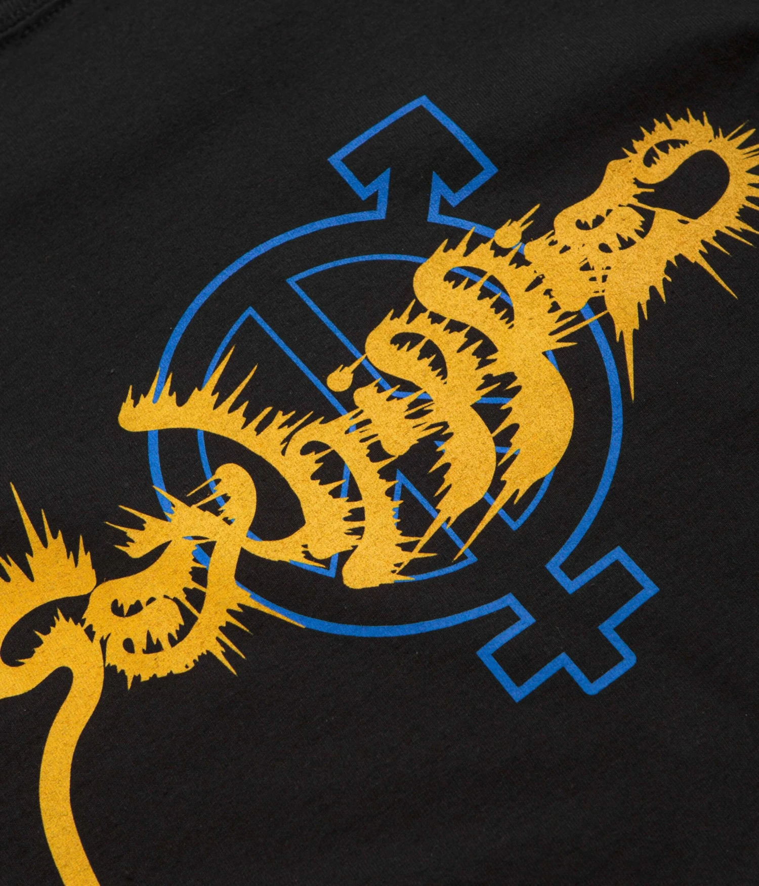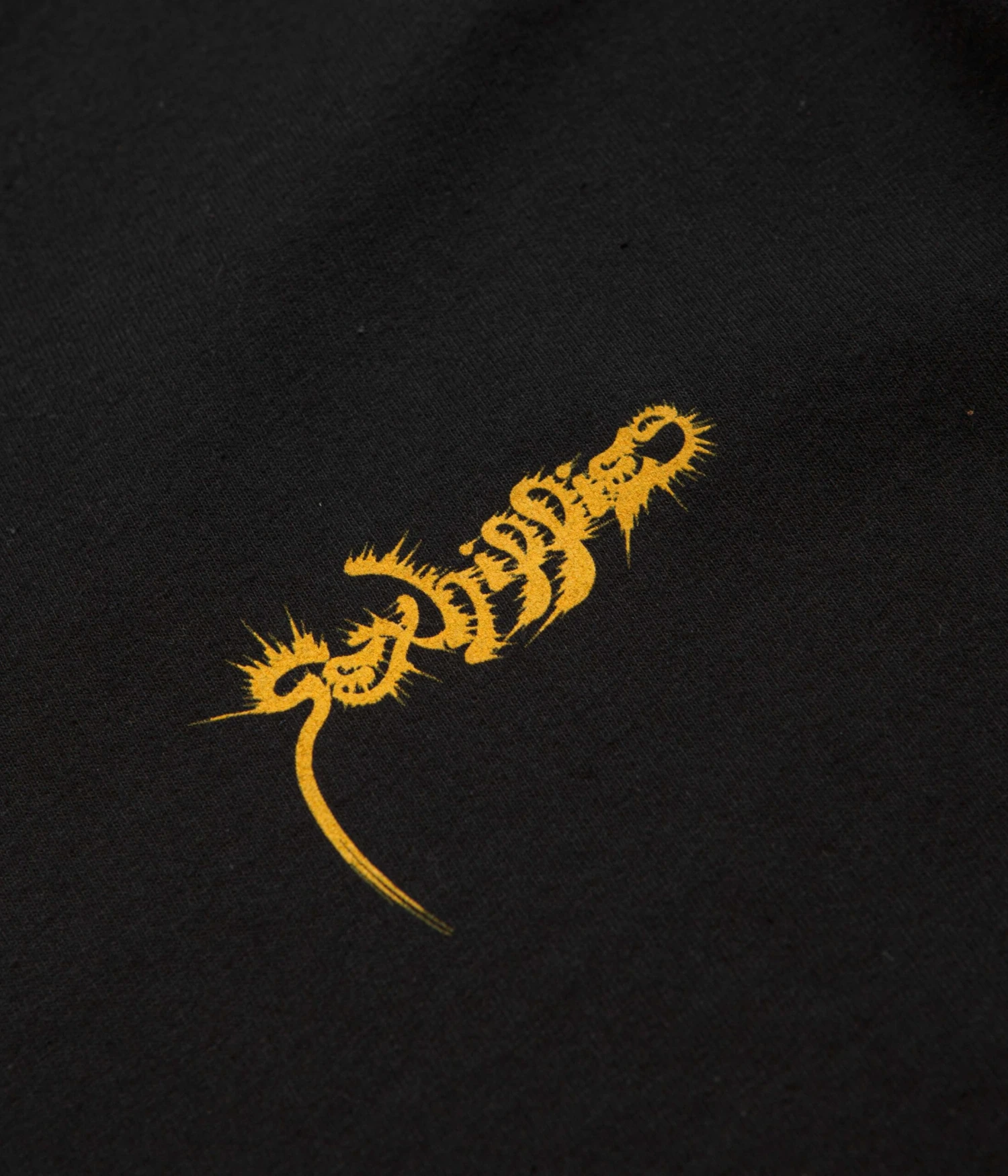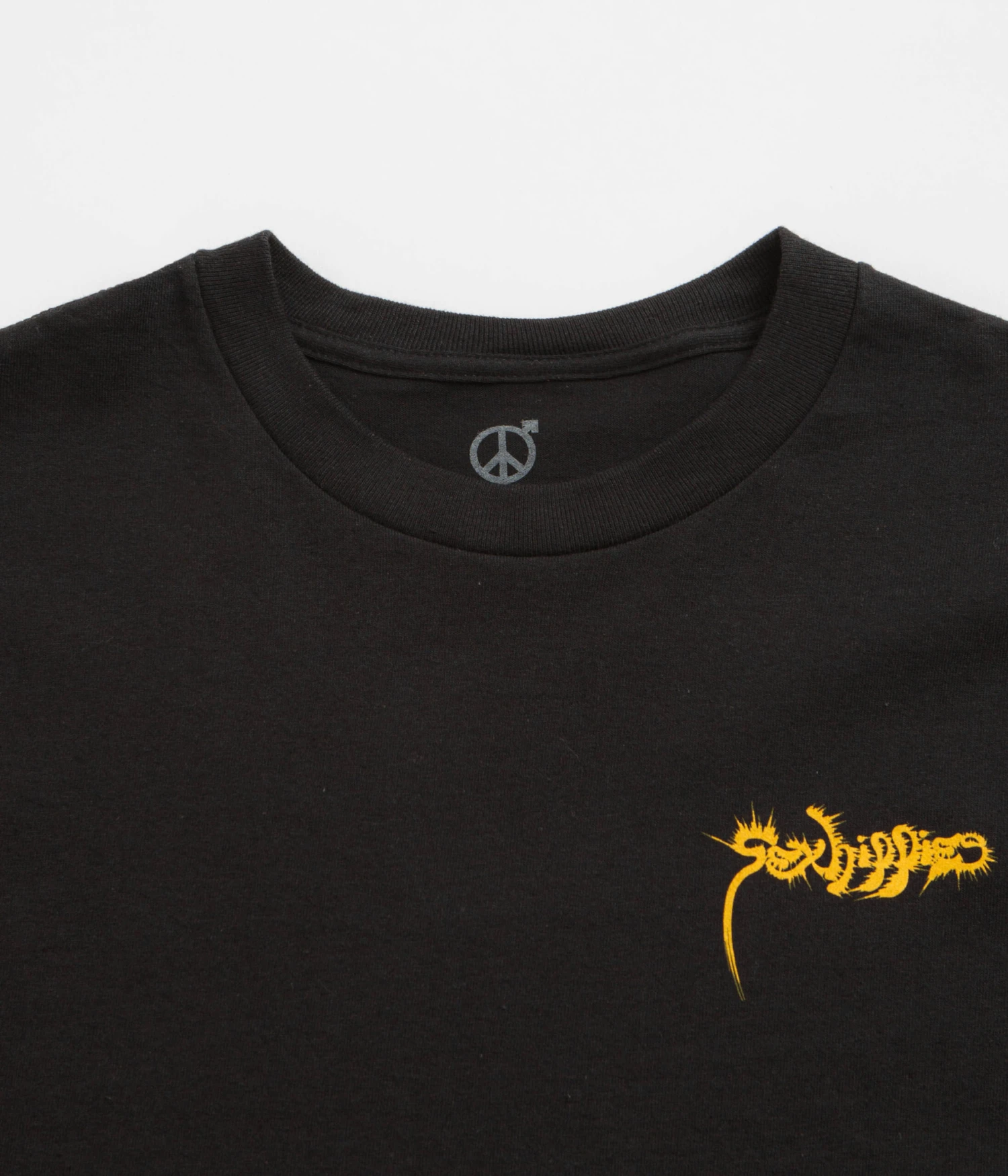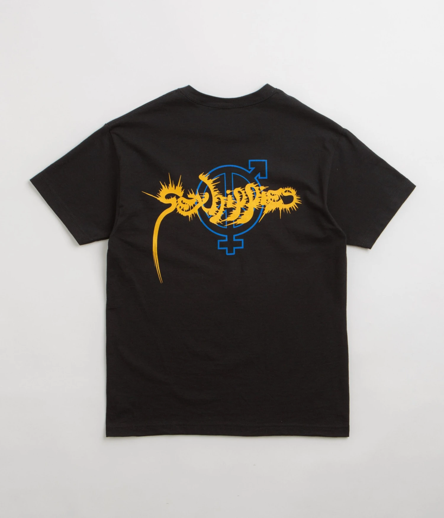 Sexhippies Spray OG Logo T-Shirt in Black. Made from 100% cotton, this Sexhippies t-shirt is designed with a flexible rib knit collar and a straight cut hem. Finished in a shade of black with screen printed front and rear graphics.