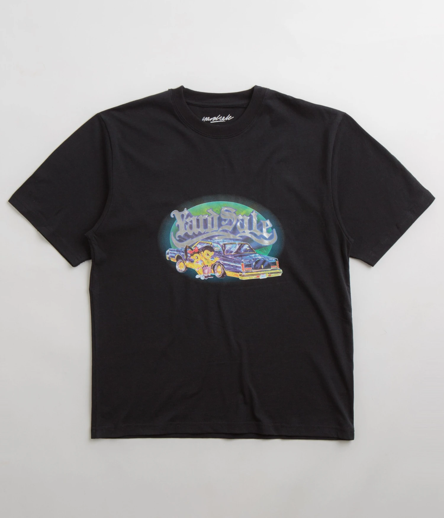 Yardsale Lincoln T-Shirt in Black. Inspired by Y2K aesthetics, this regular fitting Yardsale t-shirt is made from 100% cotton. Featuring a classic crew collar and a reinforced hem, this black Yardsale t-shirt is finished with screen printed centre chest artwork.