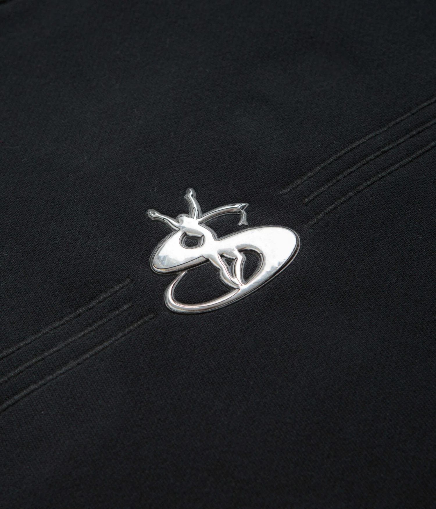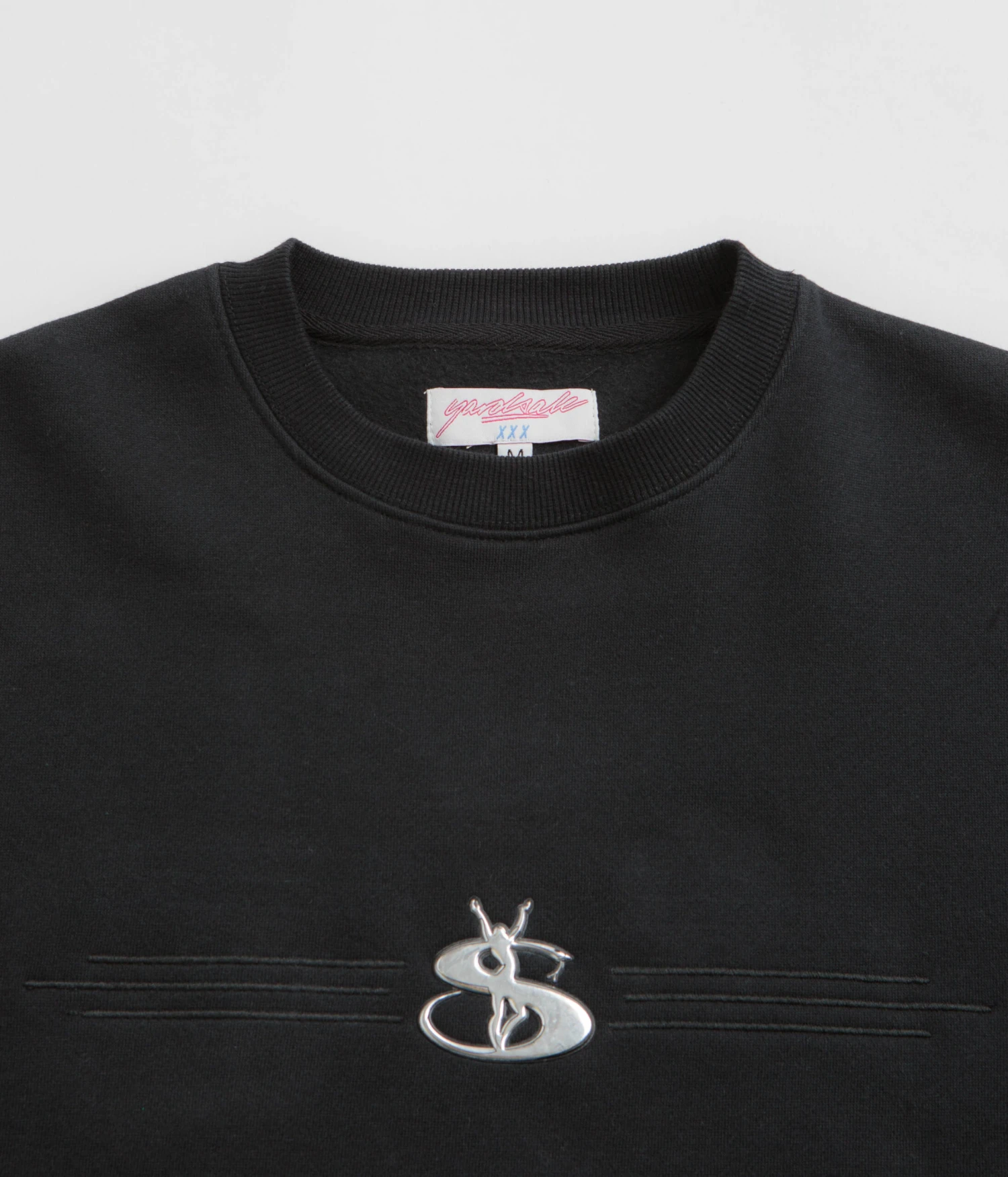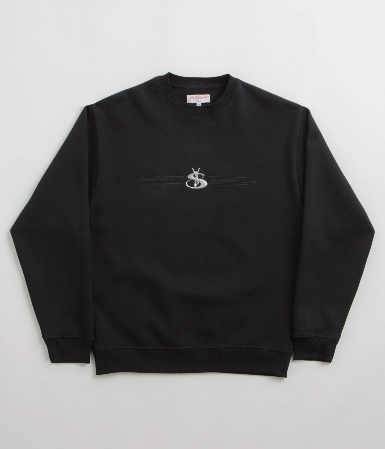 Yardsale Pearl Crewneck Sweatshirt in Anthracite. Regular fitting and made from 100% cotton, this Yardsale sweatshirt is designed with a rib knit collar, ribbed cuffs and a woven elastic hem. Finished in a shade of black grey with a shiny, metallic applique chest graphic.