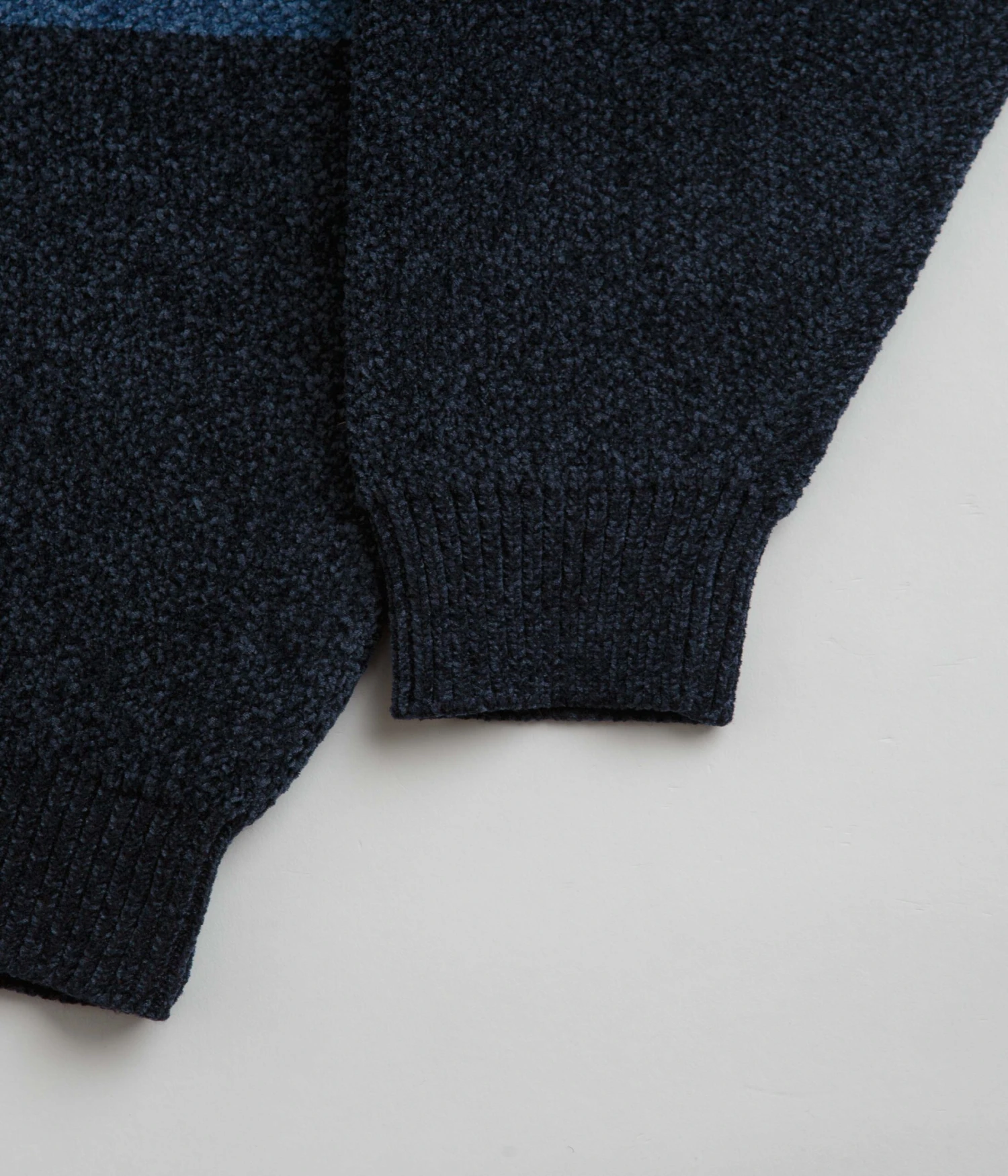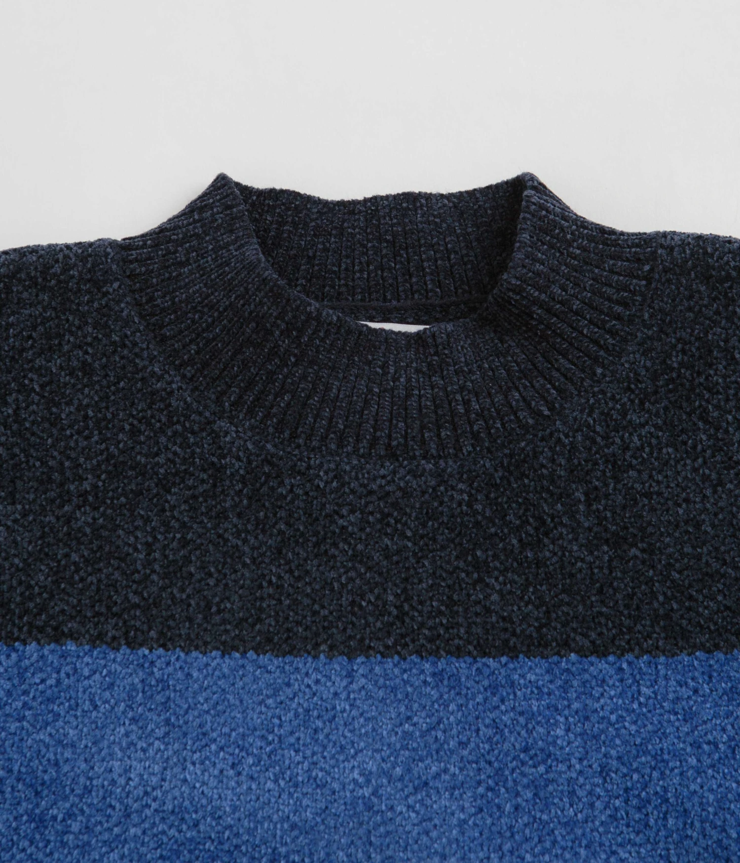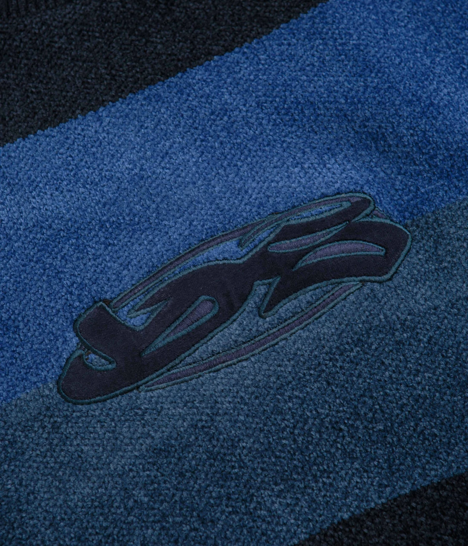 Yardsale Tri Chenille Crewneck Sweatshirt in Navy and Midnight. Part of the brand’s latest release, this relaxed fitting Yardsale sweatshirt is made from a cotton, polyester and chenille knit blend. Featuring a ribbed mock neck collar, ribbed cuffs and a woven elastic hem, this Yardsale sweater is finished with a jacquard stripe pattern and an embroidered YS chest graphic.