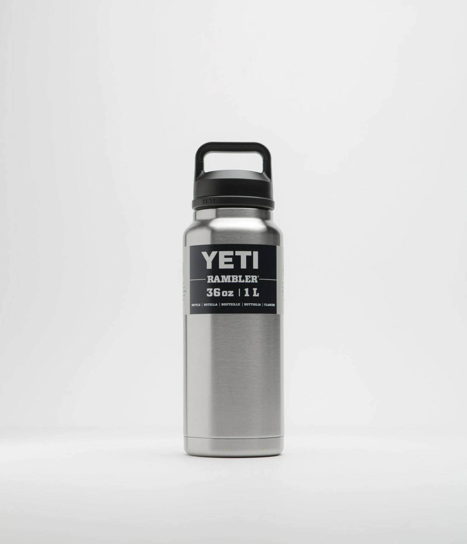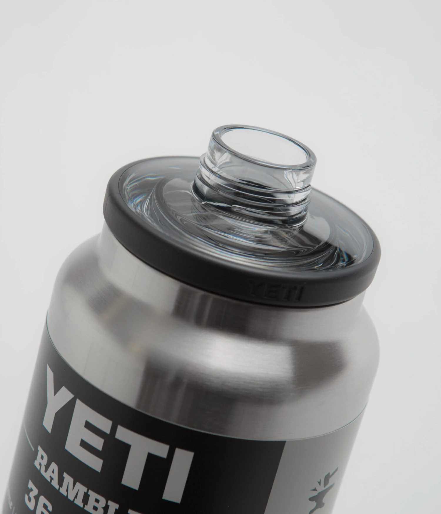 Yeti Chug Cap Rambler Bottle 36oz in Stainless Steel. Double-wall vacuum insulated and ideal for travel, commuting and everyday use, this Yeti Rambler Bottle is made from 18/8 stainless steel. Featuring a removable Chug Cap topper and a fluid capacity of up to 1065ml, this steel Yeti bottle is dishwasher safe and finished with embossed branding.